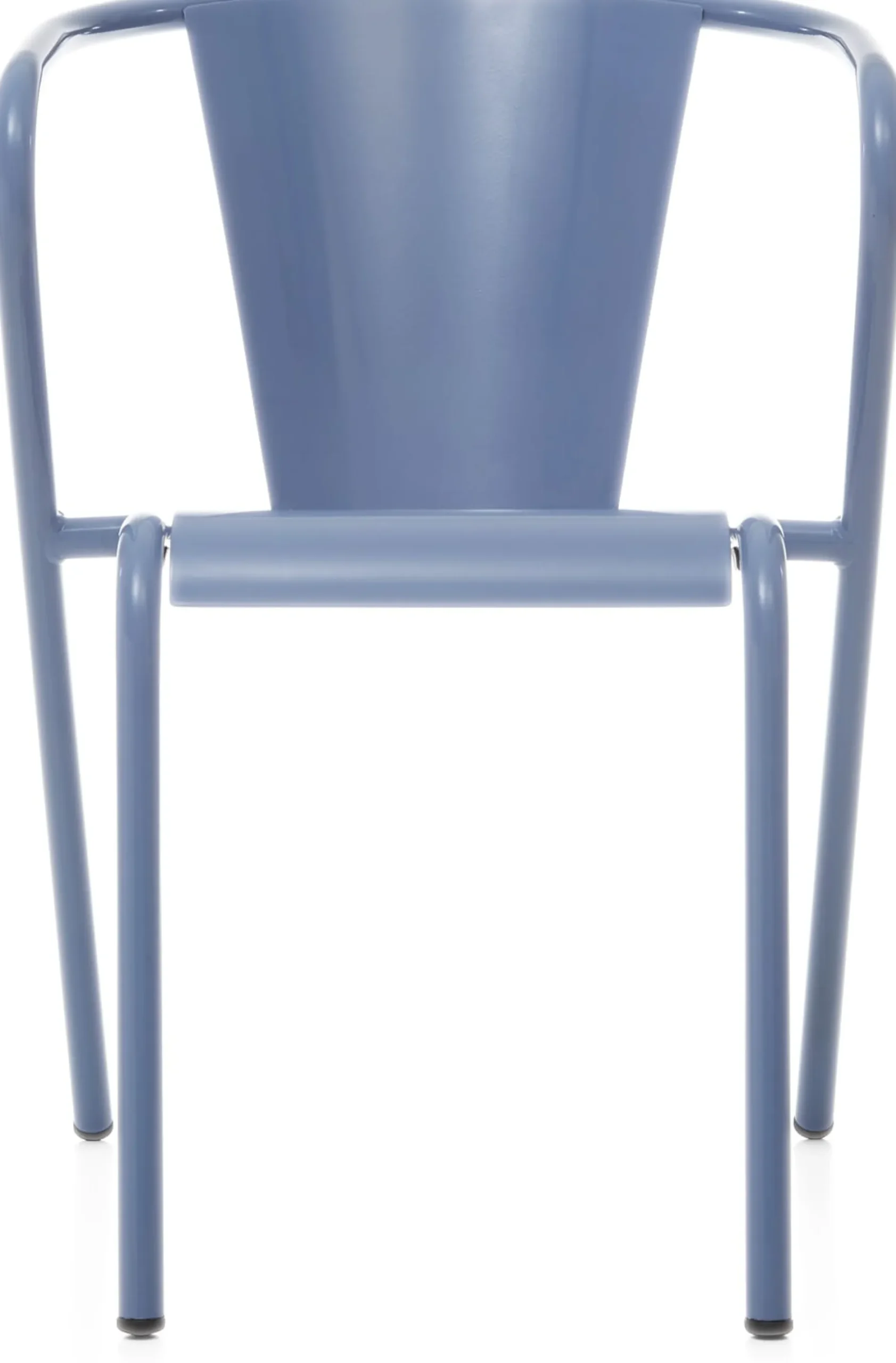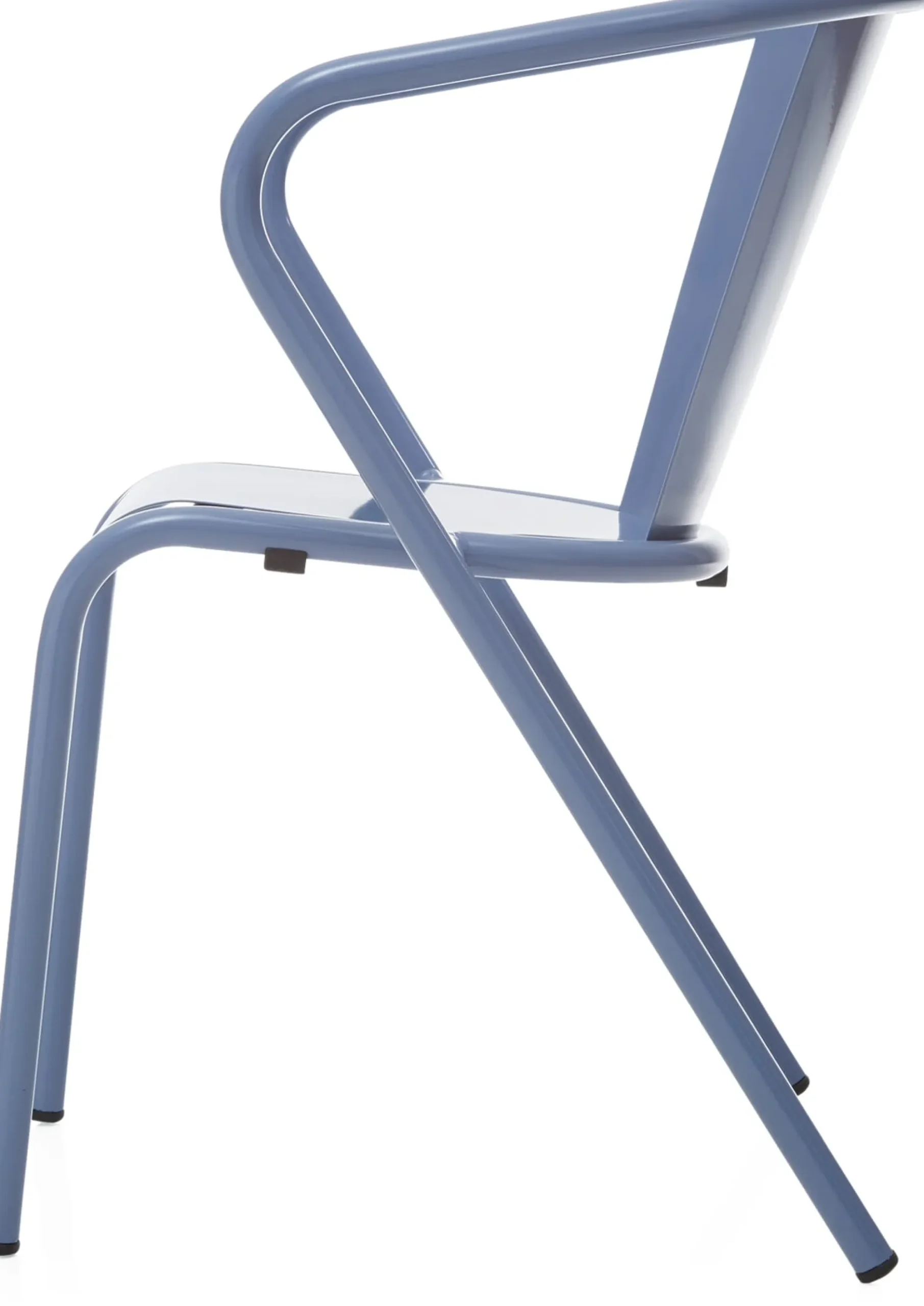 Portugiesische Ikone: Seit den 1950er-Jahren produziert und aus dem öffentlichen Bild Portugals nicht wegzudenken ist dieser schöne Stuhl aus Stahl, wetterfest pulverbeschichtet. Dank seiner Formgebung und seinem leicht abfallenden Sitzwinkel sitzt man in ihm sehr komfortabel und entspannt – nicht nur beim Café Galão. Schöne Sitzgelegenheit für den Ess-, Lese- und Sonnenplatz. In der Auswahl an attraktiven Farben verbirgt sich hinter den Versionen Perlweiß, Taubenblau und Blassgrün eine Besonderheit: Sie gehören zu den Farben, die die Stadtverwaltung Lissabons als Farben zur öffentlichen Bestuhlung freigegeben hat.