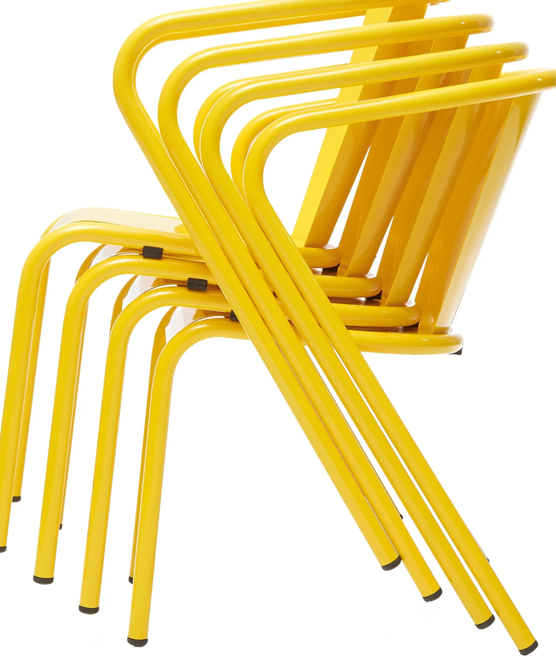 Portugiesische Ikone: Seit den 1950er-Jahren produziert und aus dem öffentlichen Bild Portugals nicht wegzudenken ist dieser schöne Stuhl aus Stahl, wetterfest pulverbeschichtet. Dank seiner Formgebung und seinem leicht abfallenden Sitzwinkel sitzt man in ihm sehr komfortabel und entspannt – nicht nur beim Café Galão. Schöne Sitzgelegenheit für den Ess-, Lese- und Sonnenplatz. In der Auswahl an attraktiven Farben verbirgt sich hinter den Versionen Perlweiß, Taubenblau und Blassgrün eine Besonderheit: Sie gehören zu den Farben, die die Stadtverwaltung Lissabons als Farben zur öffentlichen Bestuhlung freigegeben hat.