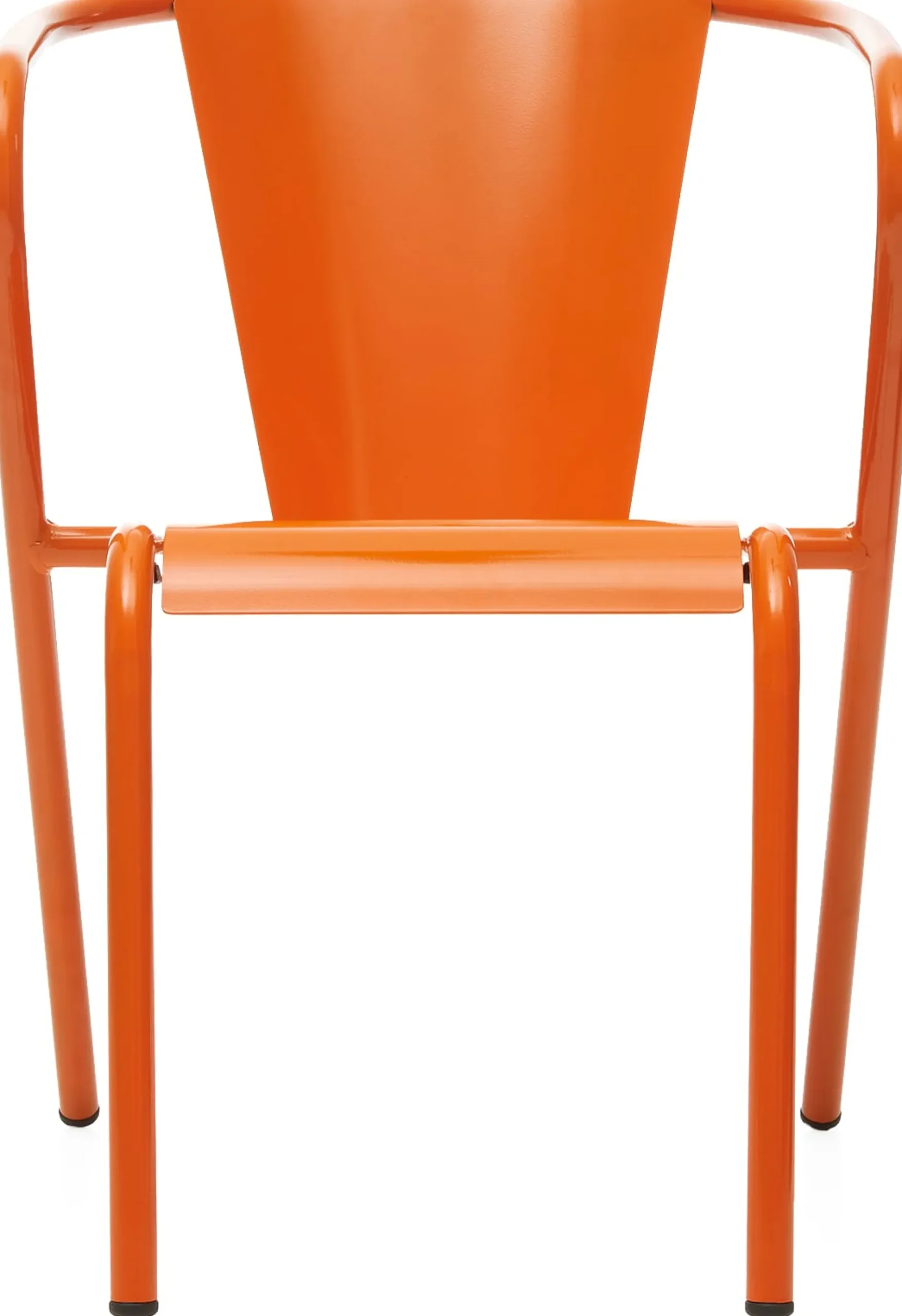 Portugiesische Ikone: Seit den 1950er-Jahren produziert und aus dem öffentlichen Bild Portugals nicht wegzudenken ist dieser schöne Stuhl aus Stahl, wetterfest pulverbeschichtet. Dank seiner Formgebung und seinem leicht abfallenden Sitzwinkel sitzt man in ihm sehr komfortabel und entspannt – nicht nur beim Café Galão. Schöne Sitzgelegenheit für den Ess-, Lese- und Sonnenplatz. In der Auswahl an attraktiven Farben verbirgt sich hinter den Versionen Perlweiß, Taubenblau und Blassgrün eine Besonderheit: Sie gehören zu den Farben, die die Stadtverwaltung Lissabons als Farben zur öffentlichen Bestuhlung freigegeben hat.