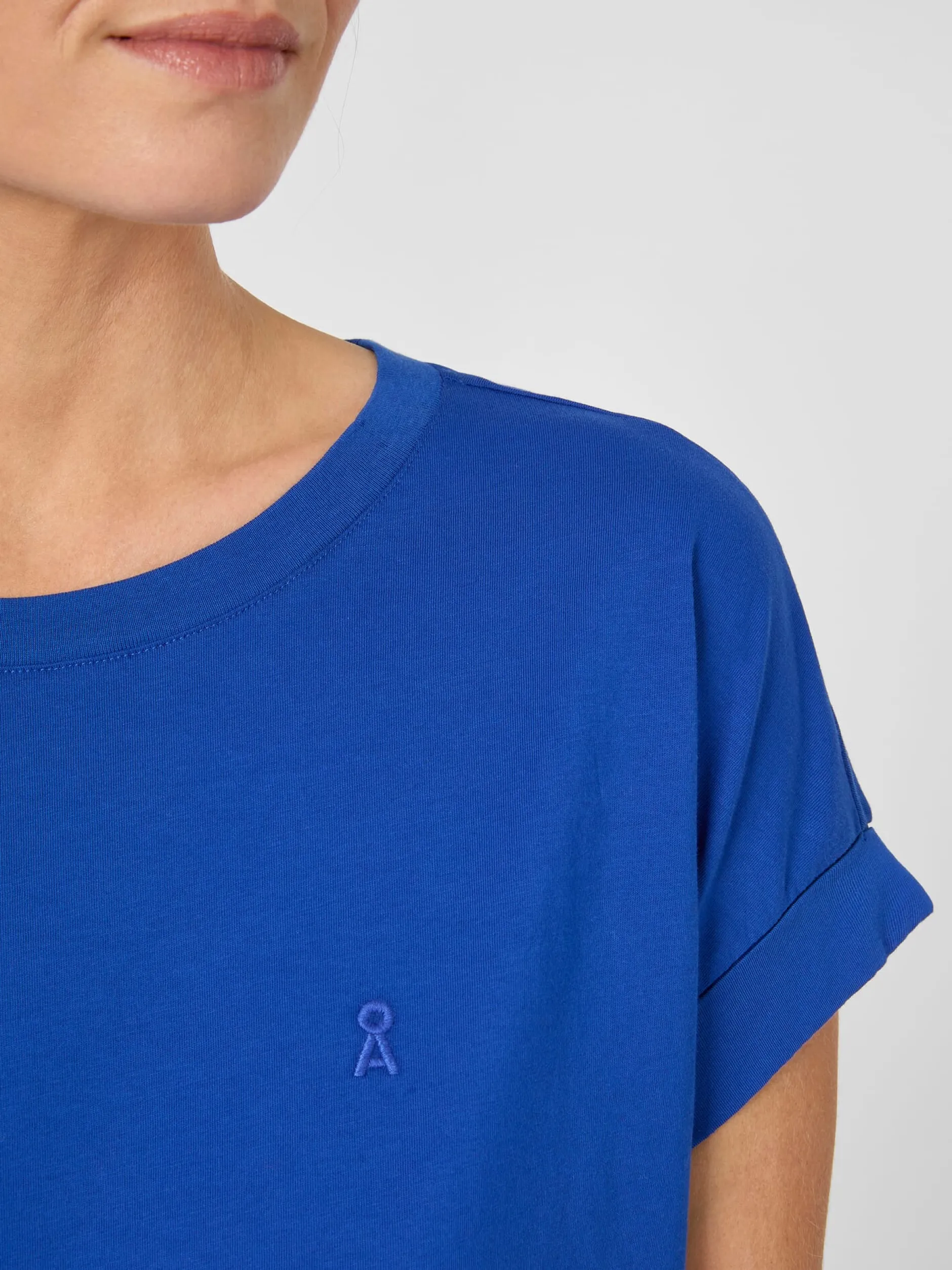 Klassisches Basisstück, das die Sommergarderobe vielseitig ergänzt. Das Shirt ist im Loose-Fit-Schnitt gearbeitet, also in lockerer Passform, die der Beweglichkeit entgegenkommt. Es ist mit Ärmelblenden ausgestattet, die verwendete Baumwolle stammt aus kontrolliert biologischem Anbau.