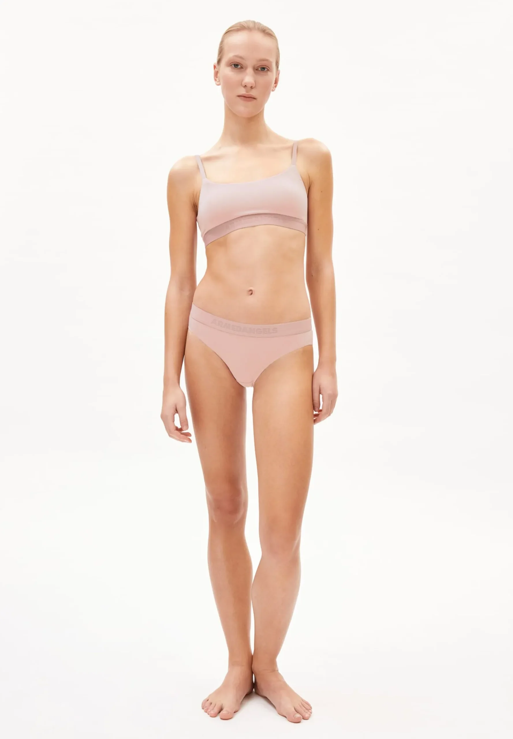 Zwickt nicht, reibt nicht, engt nicht ein – dieses Bustier aus dem Hause Armedangels ist ein idealer Begleiter für Alltag und Sport. Dank Schnitt und Material schmiegt es sich schön an die Konturen an und bietet viel Bewegungsfreiheit. Gefertigt ist das Bustier aus Modal (TENCEL™), einer regenerativen Zellulosefaser, die aus natürlich wachsendem Buchenholz gewonnen wird. Die Faser ist besonders schmiegsam und flexibel und die hohe Atmungsaktivität sorgt dafür, dass Feuchtigkeit optimal abtransportiert wird. Ein geringer Anteil Elastan schenkt dem Stoff noch mehr Elastizität und Formtreue. Das verschlusslose Rückenband ist mit einer Aussparung gearbeitet, die zusammen mit dem Armedangels-Schriftzug auf dem Unterbrustbund für das gewisse Extra sorgt.
