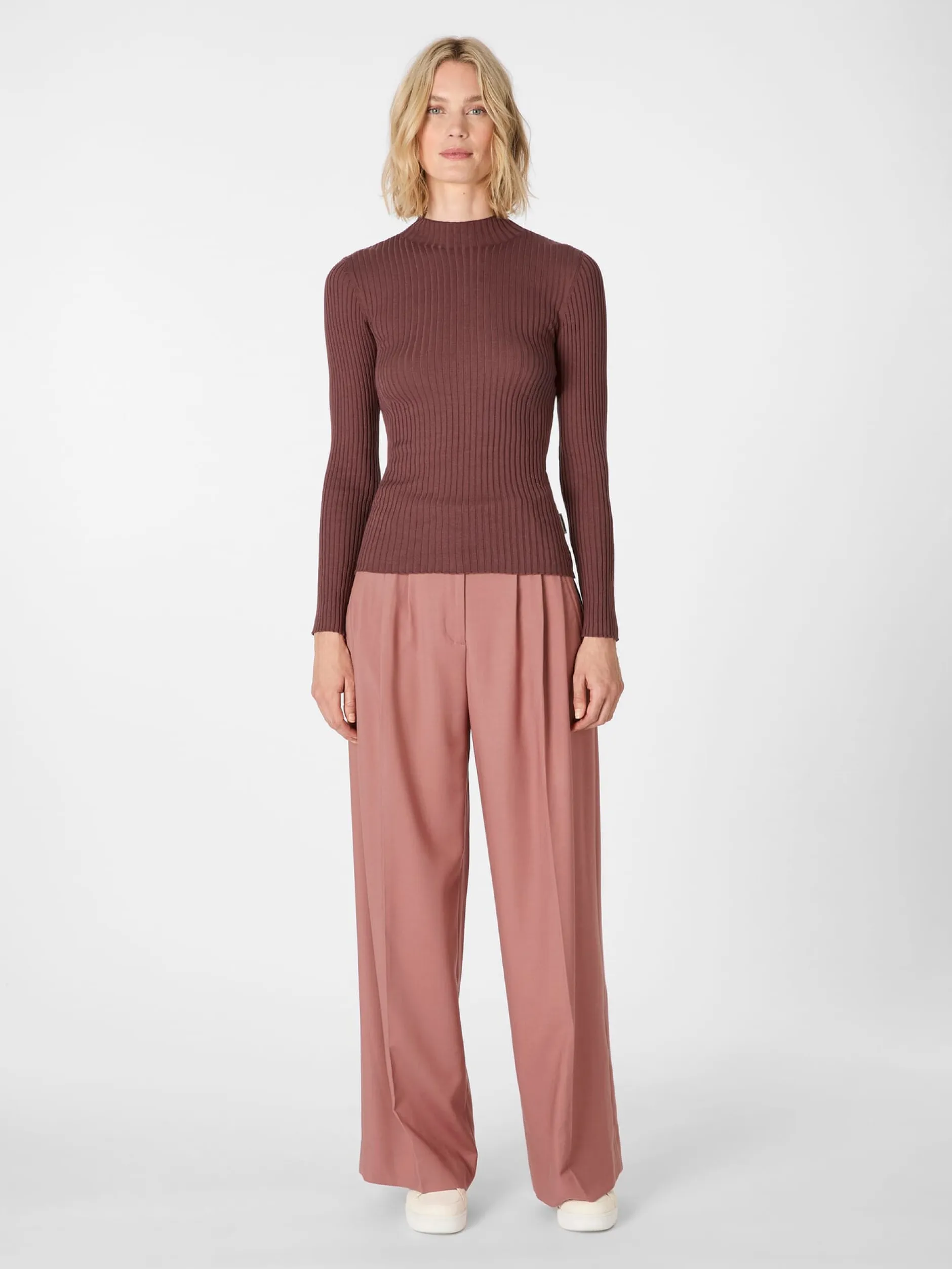 Dieser Strickpullover mit Stehkragen eignet sich geradezu ideal als Unterziehpullover, er kann aber genauso gut solo oder unter einem Blazer getragen werden. Gefertigt ist er aus einem breiten, sehr dehnbaren Rippenstrick, der sich gut an die Körperform anpasst und gleichzeitig viel Bewegungsfreiheit schenkt. Die verwendete Baumwolle stammt aus kontrolliert biologischem Anbau.