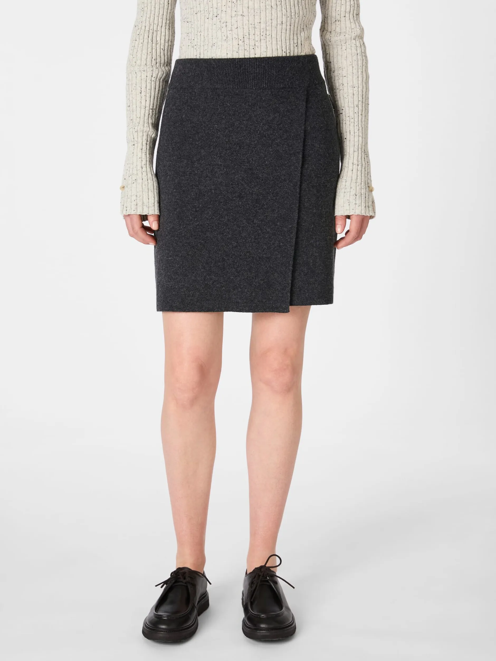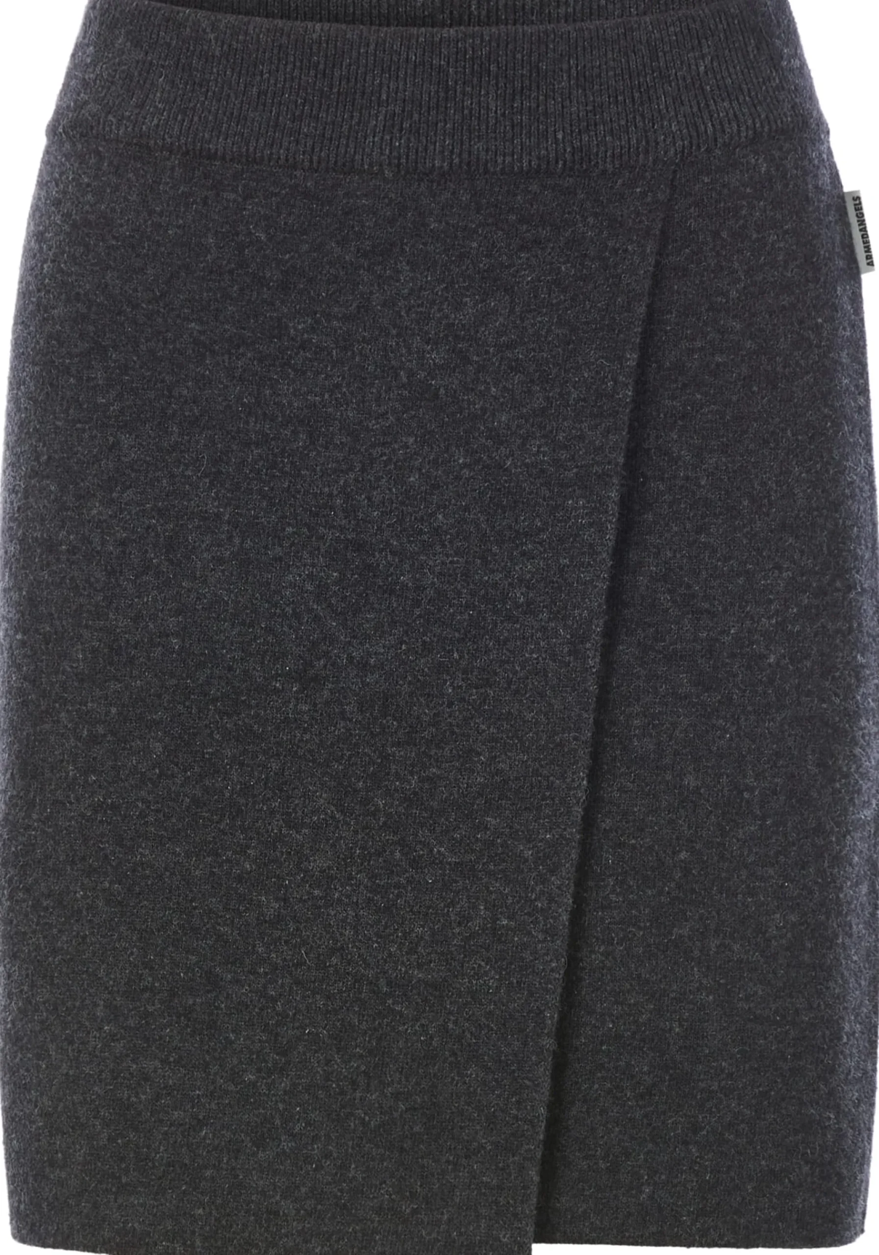 Ein Lieblingsstück für die Übergangszeit – komfortabel in Passform und Material. Armedangels verwendet hier eine Kombination aus hautsympathischer, kontrolliert biologisch angebauter Baumwolle und wärmender Wolle aus kontrolliert biologischer Tierhaltung, das verleiht dem Rock hautsympathische, wärmende und atmungsaktive Eigenschaften. Hinzu kommt noch ein geringer Anteil Polyamid zugunsten der Tragefreundlichkeit und Formtreue. Weil das Gestrick dehnbar und der Rippenstrickbund elastisch ist, wird der Tragekomfort noch erhöht. Eine besonders raffinierte Optik erhält der verschlusslose Rock durch die überlappende Stoffbahn vorn, die an einen Wickelrock erinnert. Ob im Büro, auf der Party oder bei einem Stadtbummel mit Freund*innen, dieser Rock macht stets eine gute Figur. Und da er oberhalb des Knies endet, wird die Silhouette optisch gestreckt.