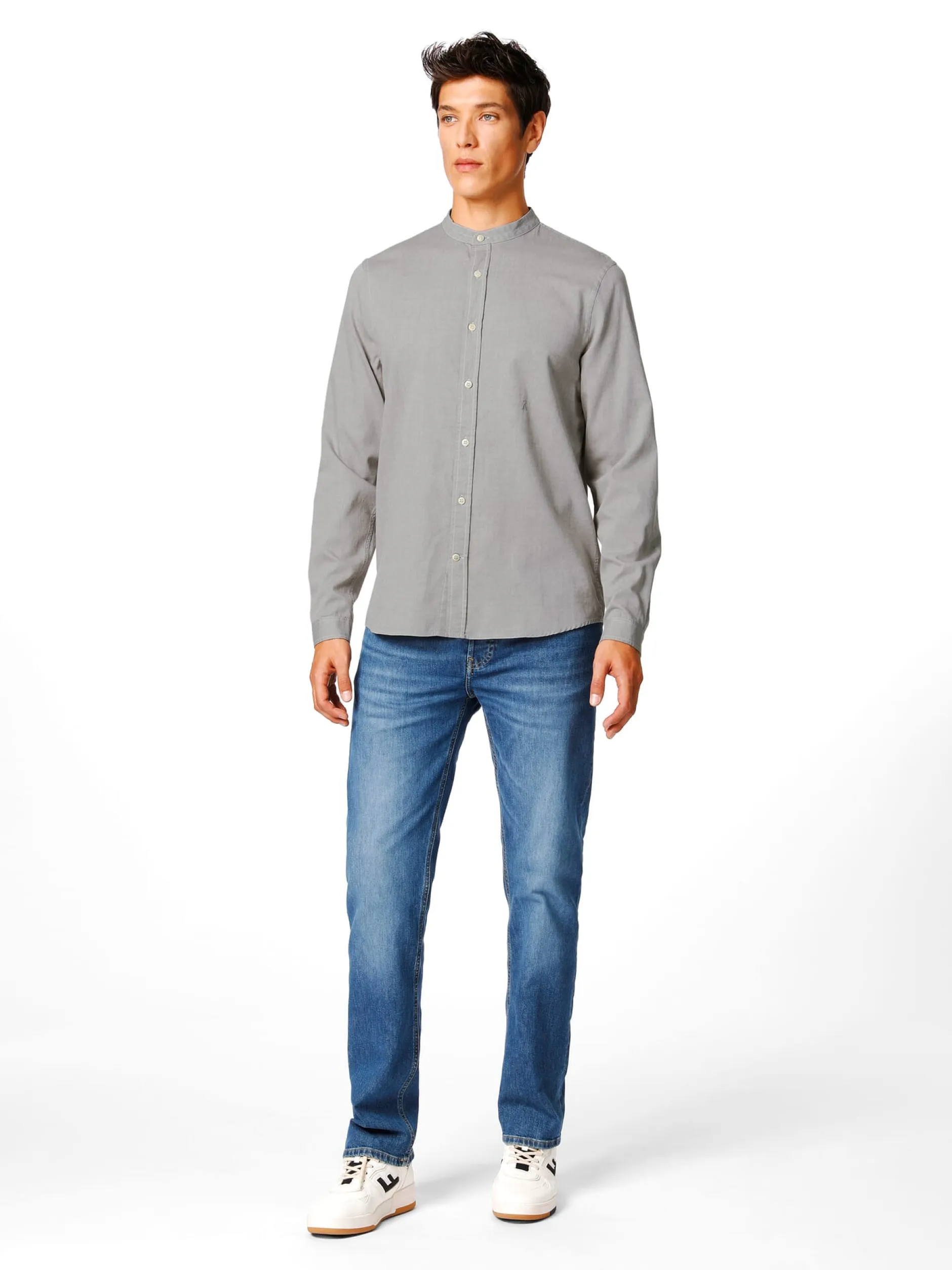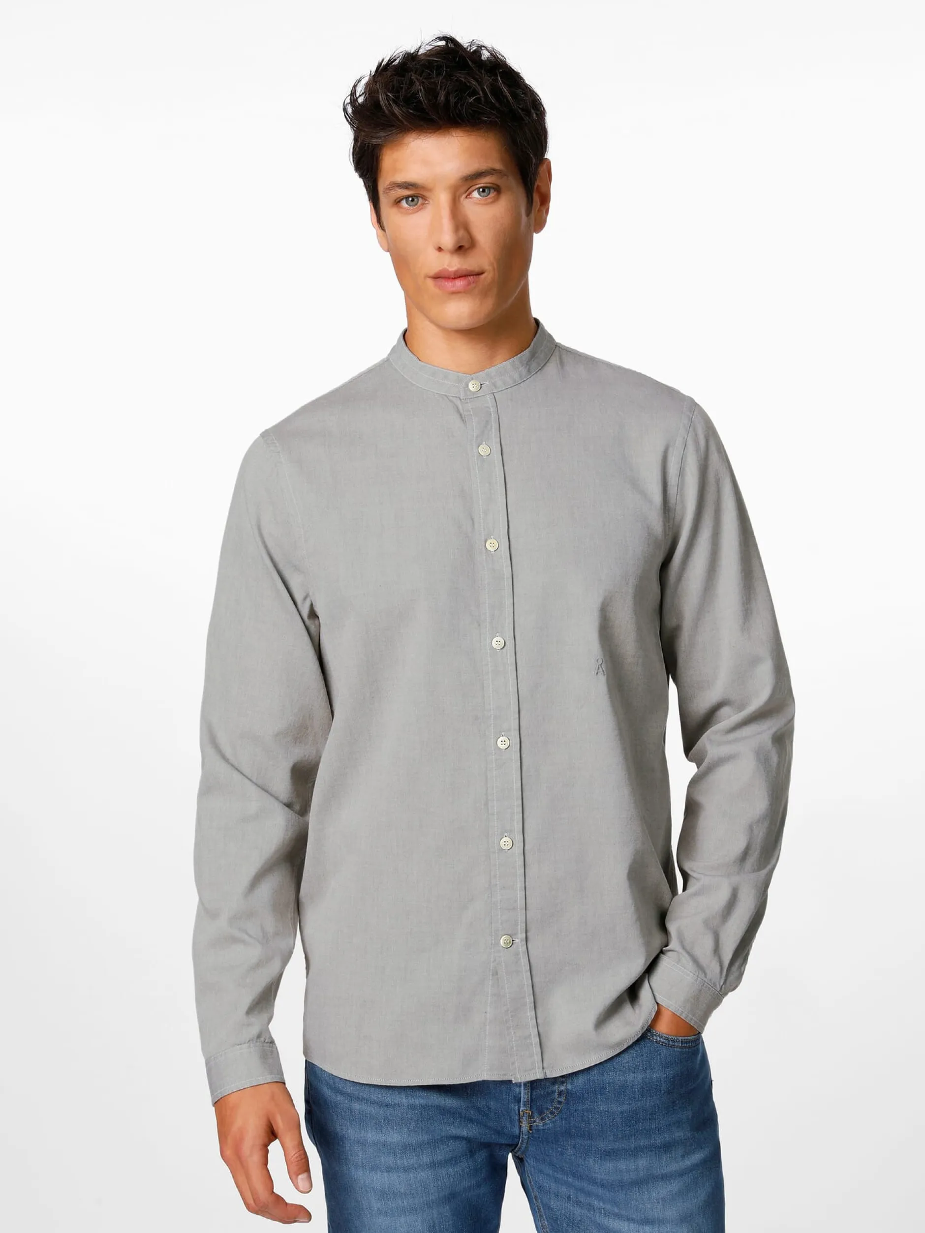 Armedangels fertigt dieses Hemd mit schmalem Stehkragen aus kontrolliert biologisch angebauter Baumwolle. Dass es ohne Brusttasche gefertigt ist, verstärkt seinen puristischen Charakter noch. Das Gewebe ist ein Chambray, der sich durch eine spezielle Webart auszeichnet, bei der die Kett- und Schussfäden verschiedenfarbig sind, wodurch ein markanter Melangeeffekt entsteht. Kontrastnähte ergänzen dieses optische Bild. Der Rumpfsaum ist leicht gerundet, die Manschetten sind knöpfbar.