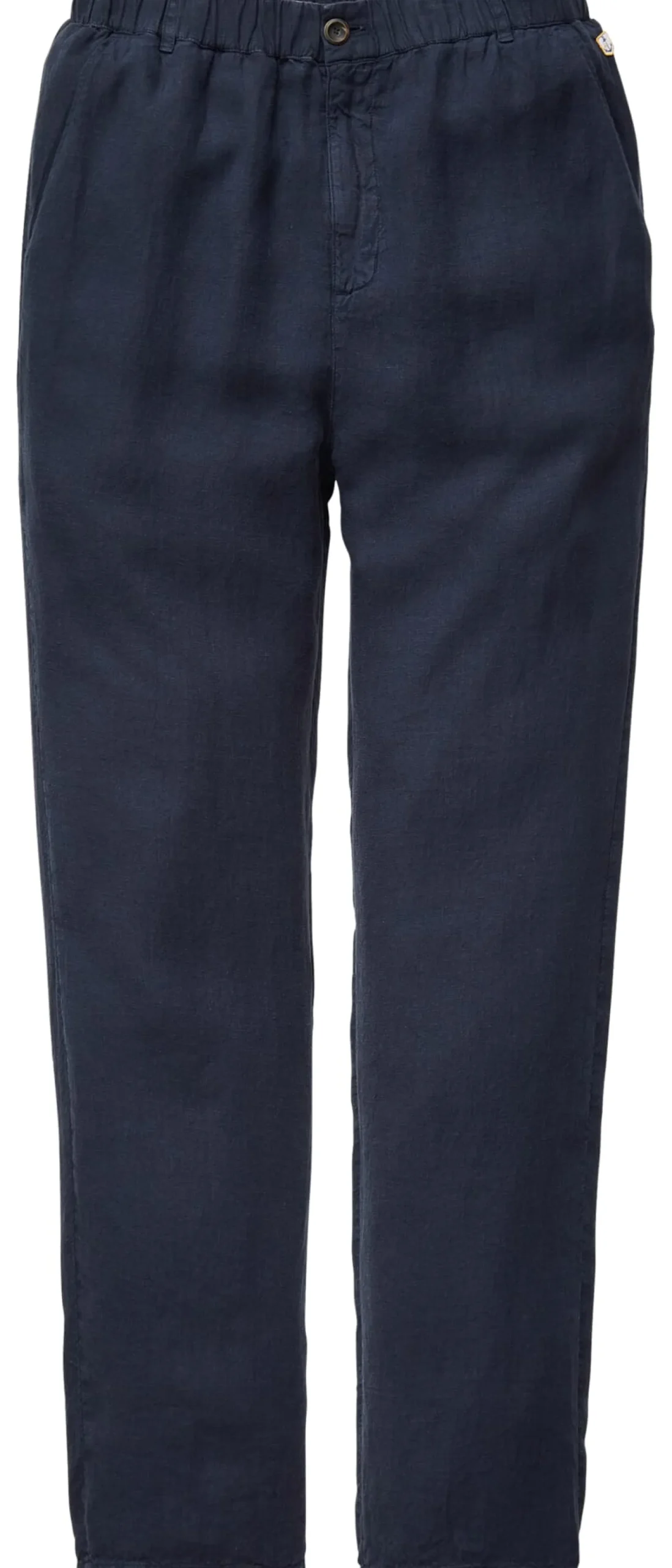Lässige, maritime Hose aus gewaschenem Leinen, das einen leichten Used Look zeigt. Die Hose wird mittels Metallreißverschluss und Knopf geschlossen. Ein Gummibund sorgt für bequemen Sitz. Zwei Seitentaschen und eine geknöpfte Gesäßtasche nehmen Kleinteile des täglichen Bedarfs auf.