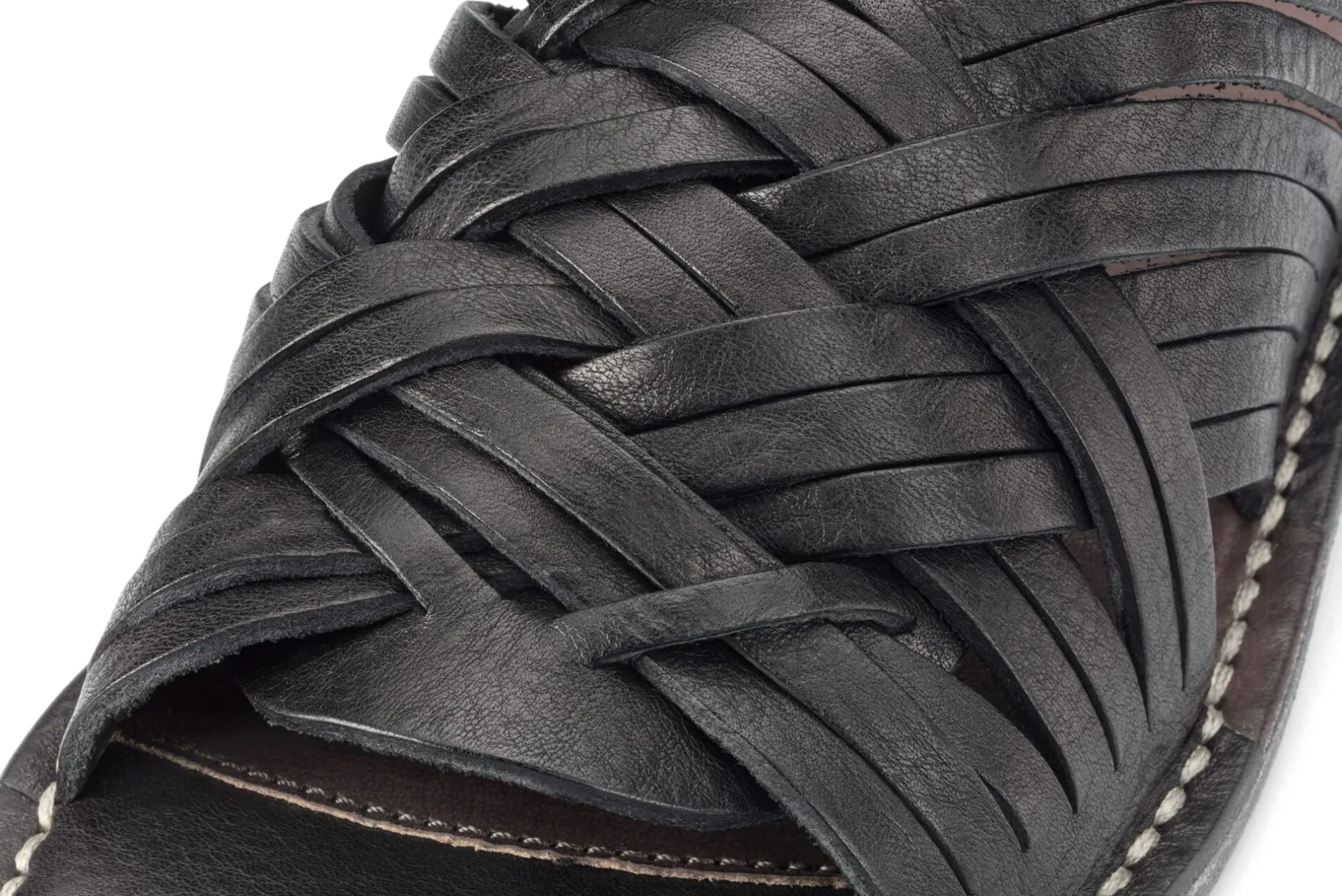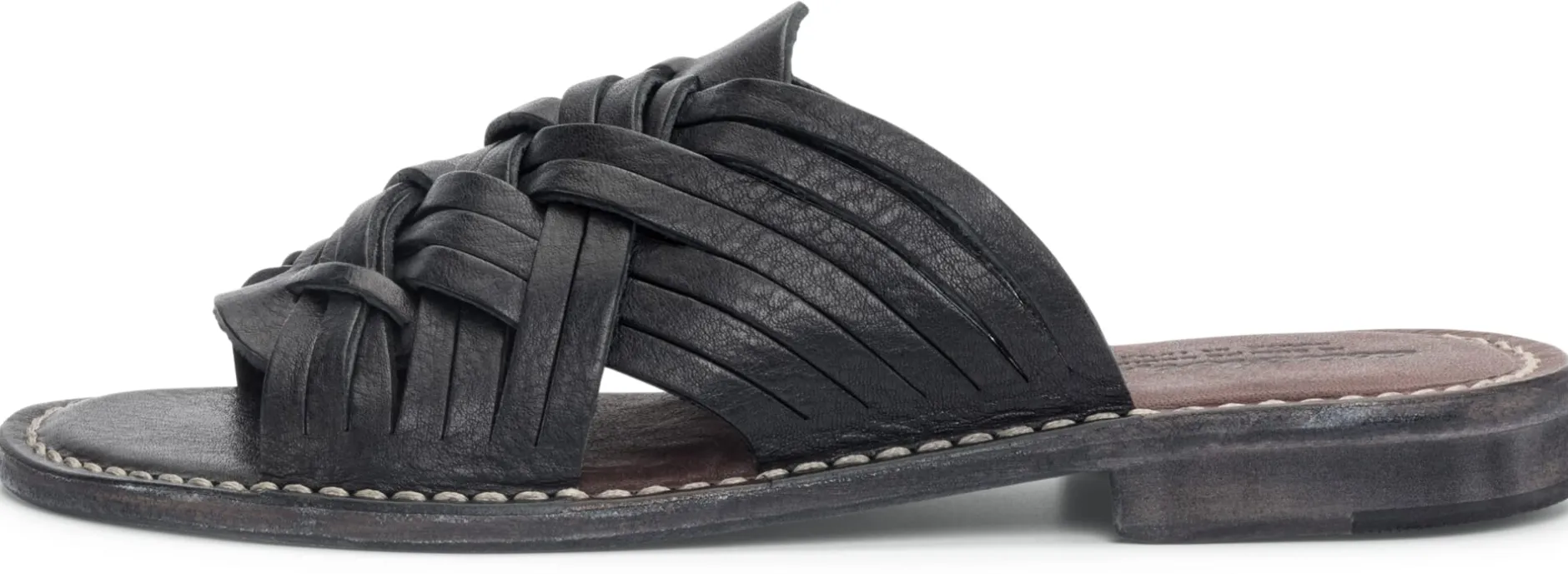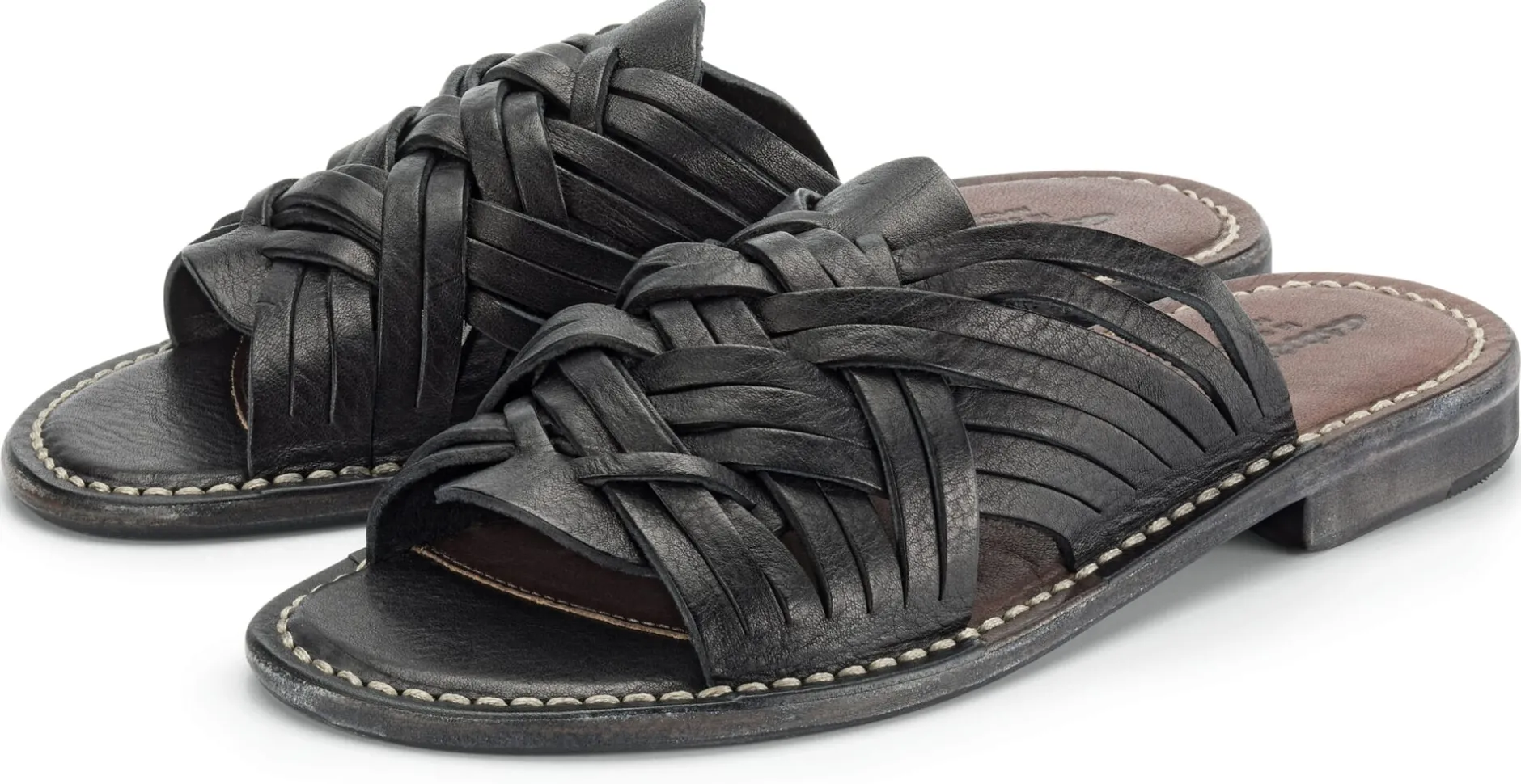 Diese zeitlos schöne Sandale aus geschmeidigem, vegetabil gegerbtem Rindleder überzeugt durch die aufwendige Flechttechnik, bei der schmale Lederstreifen kunstvoll miteinander verwoben werden. Das geschmeidige, markant genarbte Oberleder ist ungefüttert verarbeitet, so liegt die Veloursleder-Seite innen und bietet den Füßen einen weichen Empfang. Die gepolsterte Decksohle aus vegetabil gegerbtem Rind- und Büffelleder sorgt auf Schritt und Tritt für ein angenehmes Tragegefühl. Mehr Stabilität und Flexibilität erhält die Sandale durch die durchgenähte Laufsohle aus Rindleder. Für einen besseren Grip ist diese mittig und am Absatz mit Gummieinsätzen gearbeitet.