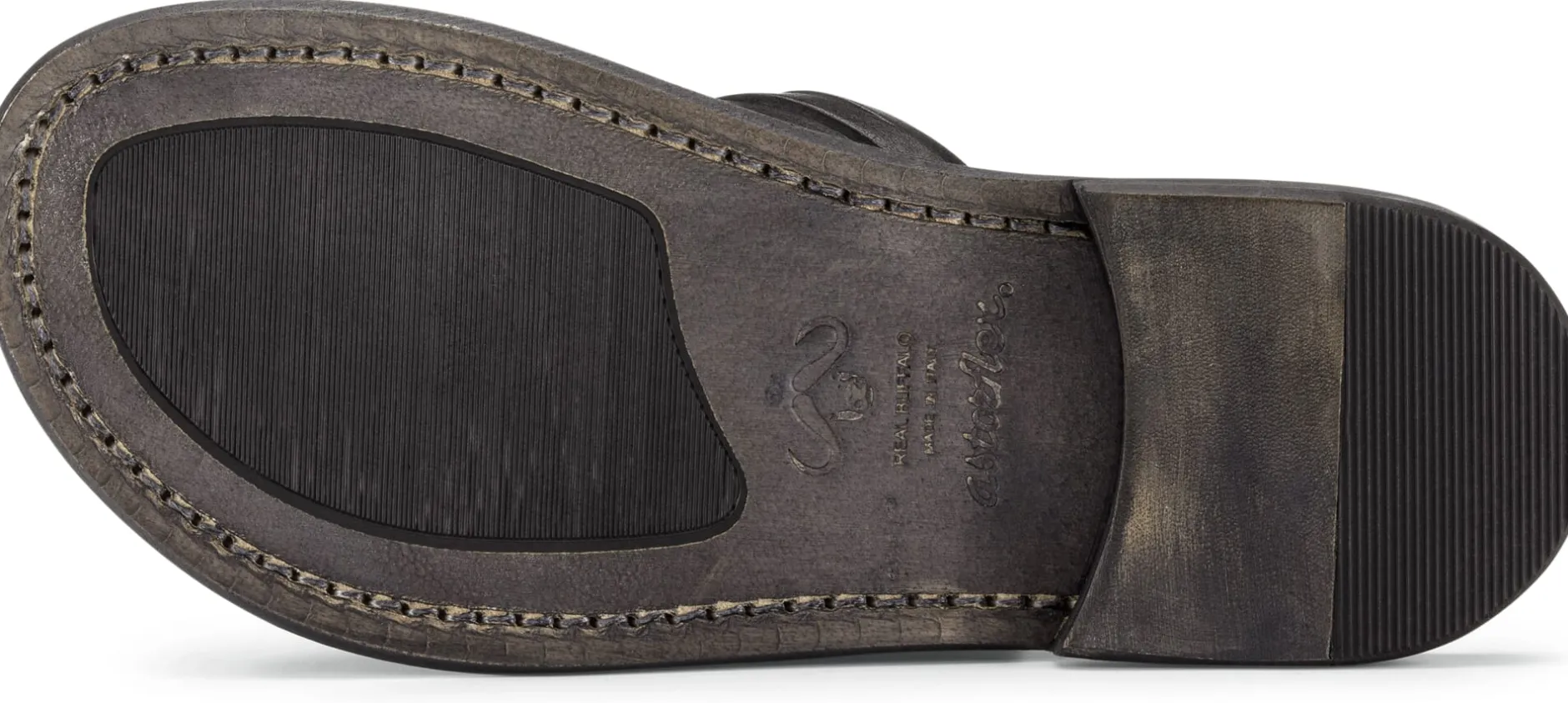 Die Anfänge von Astorflex reichen bis ins 19. Jahrhundert zurück. Nach dem Ersten Weltkrieg gründeten die Nachfahren der Schuhmacherfamilie das Unternehmen „Fratelli Travenzoli“ in Castel d’Ario, einer kleinen Schuhmacherstadt in der Provinz Mantua (Lombardei). Fortan spezialisierten sich die Travenzolis auf die Herstellung von Schuhen nach der „Idealmethode“, bei der eine sichtbare Naht das Obermaterial mit der Decksohle verbindet, was die Schuhe besonders flexibel, strapazierbar und langlebig macht. Heute liegen die Geschicke von Astorflex in den Händen von Fabio Travenzoli, der bei der Produktion konsequent auf hochwertige natürliche Materialien setzt. Für den Oberschuh wird erstklassiges italienisches Leder verwendet, insbesondere aus Meistergerbereien in der Toskana. Futter und Einlegesohlen sind aus weichem Kalbleder, vegetabil gegerbt in einem Sud aus Eichenrinde und Mimose. Die Laufsohlen bestehen überwiegend aus Naturkautschuk, und es werden ausschließlich Klebstoffe auf Wasserbasis eingesetzt. Bei Astorflex hat man sich eben ganz dem „guten Schuh“ verschrieben, wie bereits der Zusatz „La scarpa buona“ im Logo der Schuhmanufaktur verspricht.