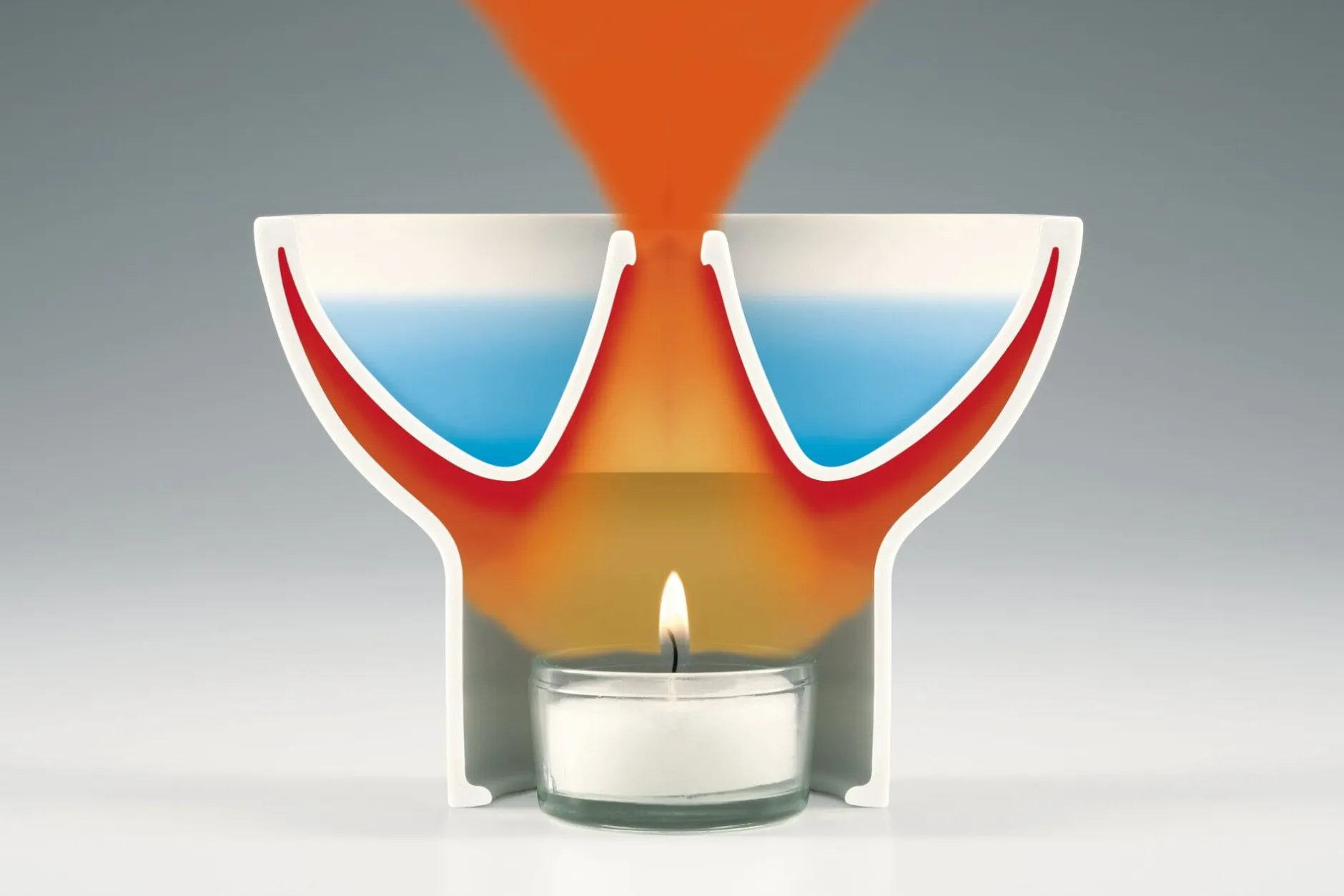 Die Konstruktion hält die Temperatur des Wassers in der mit einem Teelicht befeuerten Aromalampe stets konstant bei 45–50 °C. Die Aromen steigen gleichmäßig auf, die Öle können nicht einbrennen. Man gibt 3 bis 4 Tropfen ätherischen Öls auf etwa 100 ml angewärmtes Wasser.