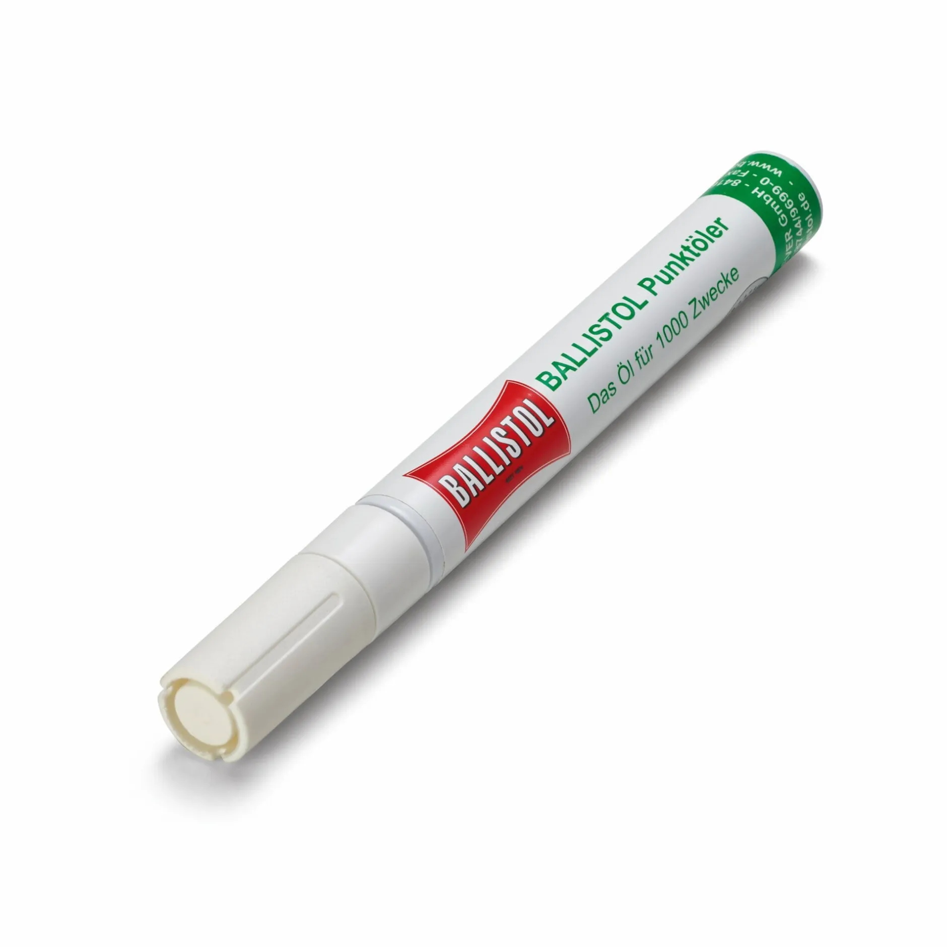 Der Punktöler ermöglicht alle Anwendungen des Ballistol-Universalöls – so einfach wie mit einem Stift – tropfenweise, fein dosiert auf kleinen Flächen oder gezielt nur an einer bestimmten Stelle. Der Punktöler ist bei Bedarf nachfüllbar.
