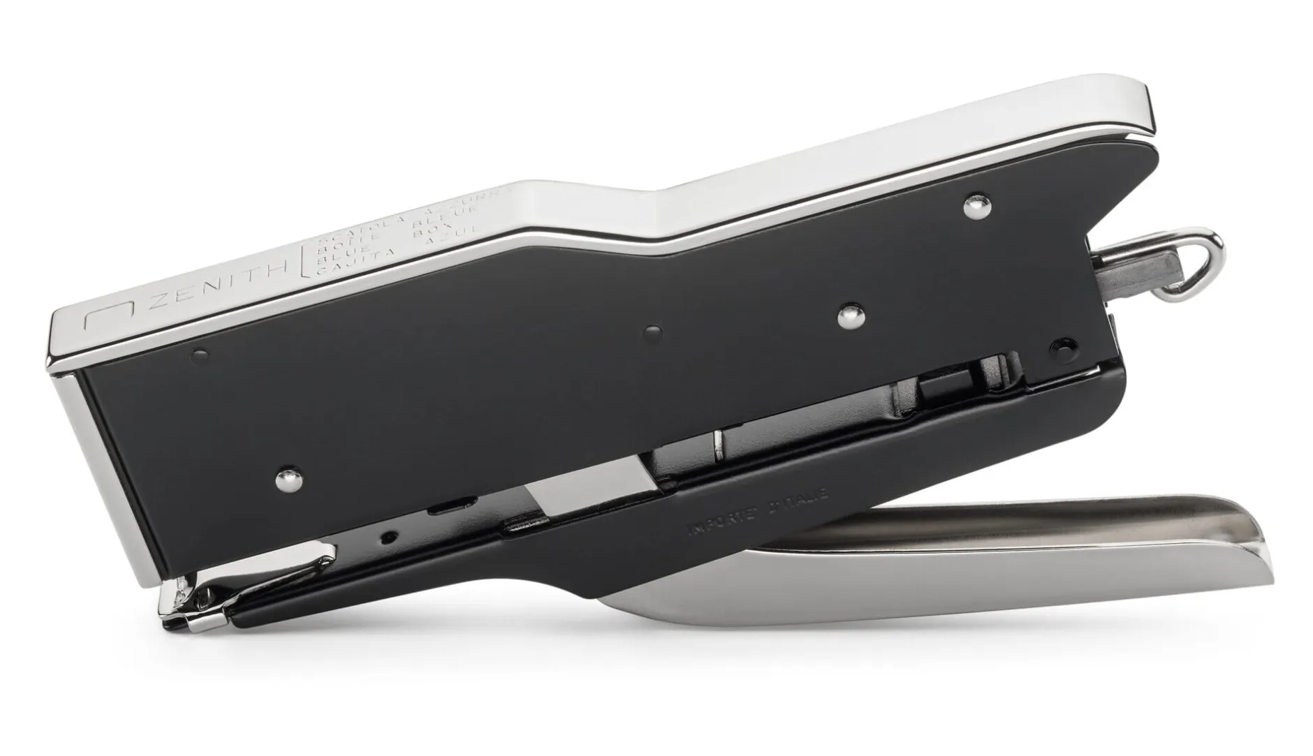 Seit 1926 produziert Balma, Capoduri & C. im lombardischen Städtchen Voghera Heftgeräte der Marke Zenith (und übrigens seit 1927 auch den legendären Papierkleber Coccoina). Die hier angebotene Heftzange für Klammern der Größen 6/4 und 6/6 und Stapelhöhen von 15 bzw. 30 Blatt Papier fertigt der Hersteller seit 1948 in technisch unveränderter Form.