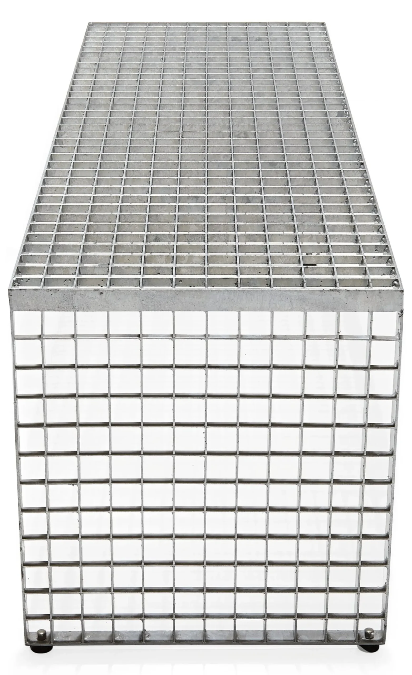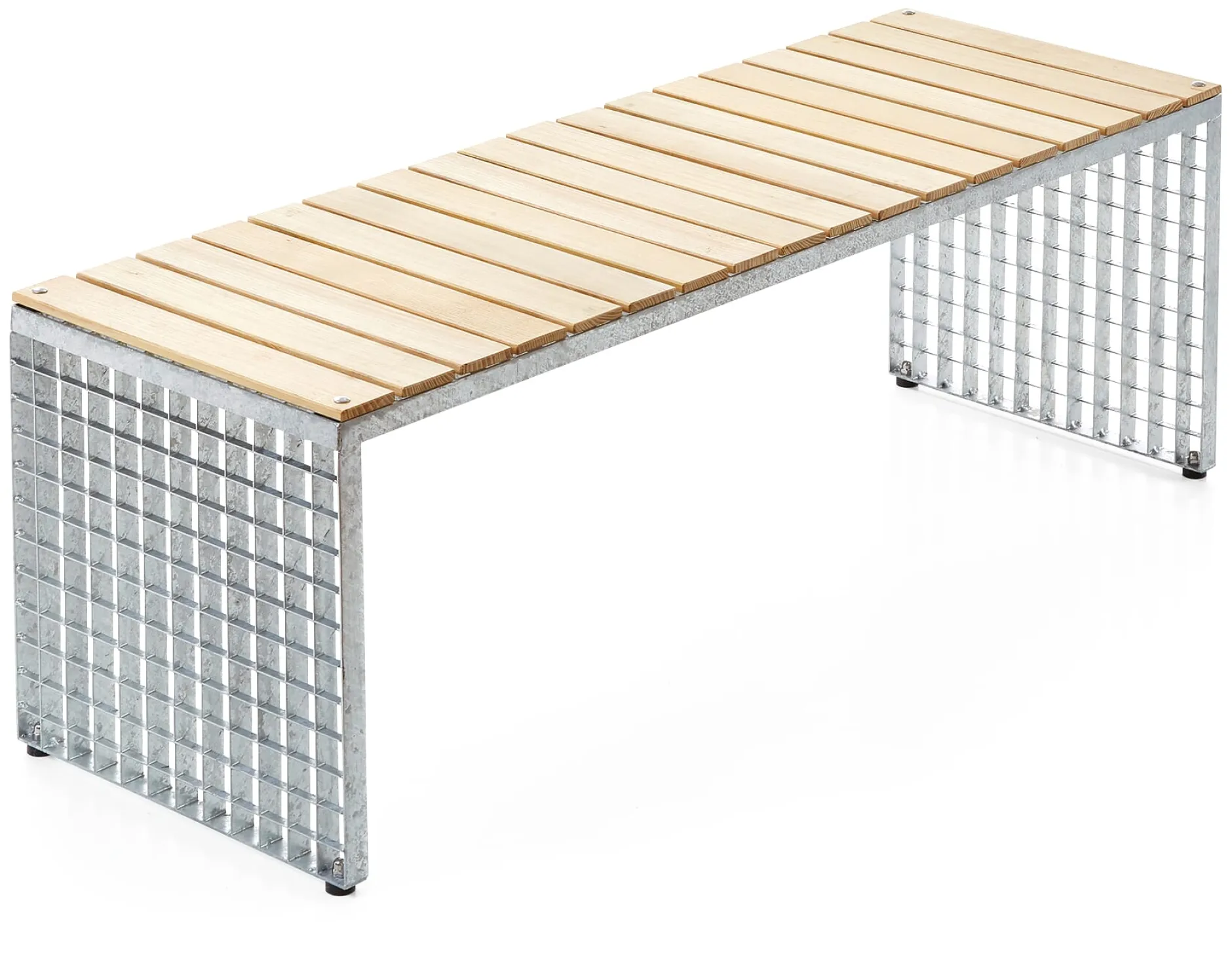 Mit Ecken und Kanten und in unverwüstlicher Industriequalität: universell einsetzbare Bank – als Möblierung von Garten und Terrasse, zur Ergänzung einer vorhandenen Sitzgruppe, als architektonisch wirksames Element vor der Haustür oder bei der Bepflanzung von Terrasse oder Balkon.