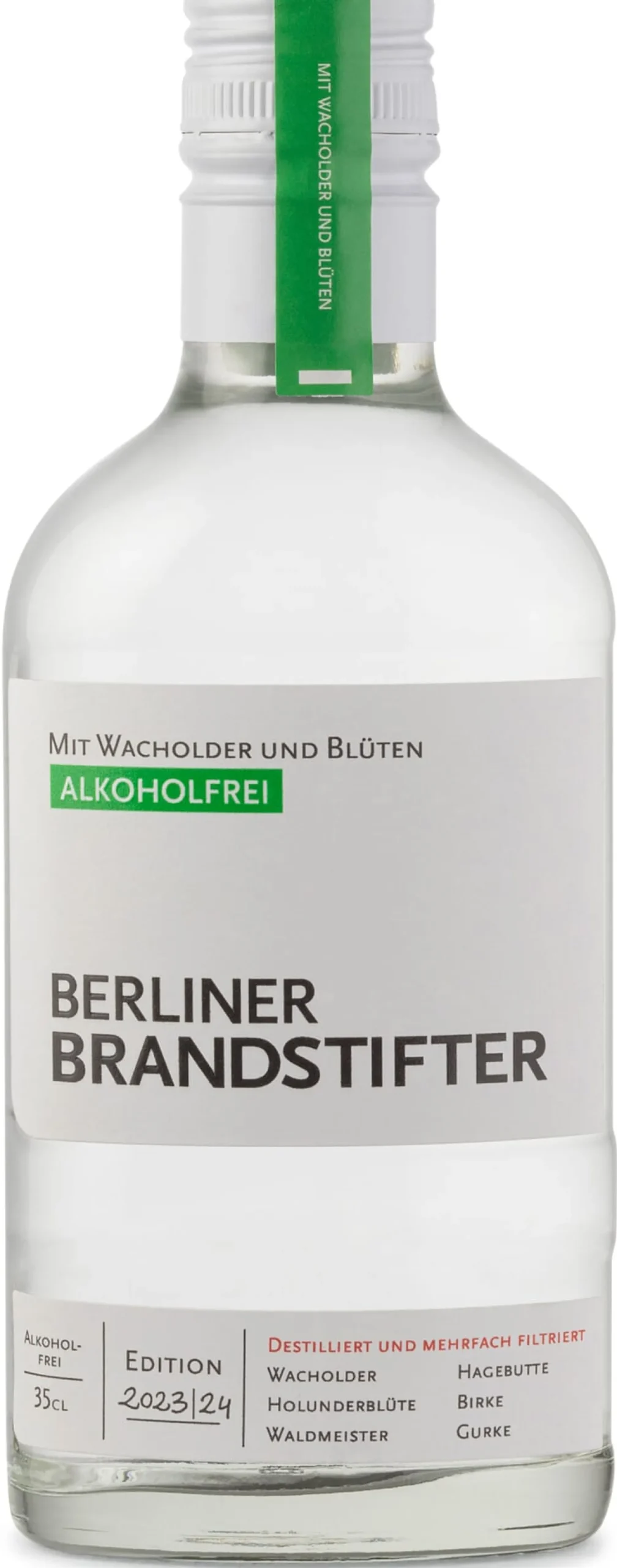 Alkoholfreie Wacholder-Alternativen für Longdrinks werden immer populärer. So haben auch die „Berliner Brandstifter“ eine solche entwickelt – mit der ganzen Expertise, die sie auch bei ihren klassischen Destillaten auszeichnet. Wie das alkoholische Pendant wird dieses alkoholfreie Wacholdergetränk in einem aufwendigen Einzeldestillationsverfahren hergestellt: Jedes verwendete Botanical wird separat destilliert, wodurch sich die Aromen perfekt aufeinander abstimmen lassen. Diese Komposition wird schließlich mit Wasser vermengt, was den Alkoholgehalt des finalen Produkts fast auf Null senkt – ohne dass der Genuss darunter leidet. Geschmacklich bringt die alkoholfreie Alternative ausbalancierte Wacholder- und Blütennoten mit, die auf feinste Aromen von Holunder, Hagebutte, Waldmeister, Gurke und Birke treffen. Die „Berliner Brandstifter“ empfehlen, die alkoholfreie Wacholder-Alternative im Verhältnis 1:3 zu mischen und auf Eis zu servieren.