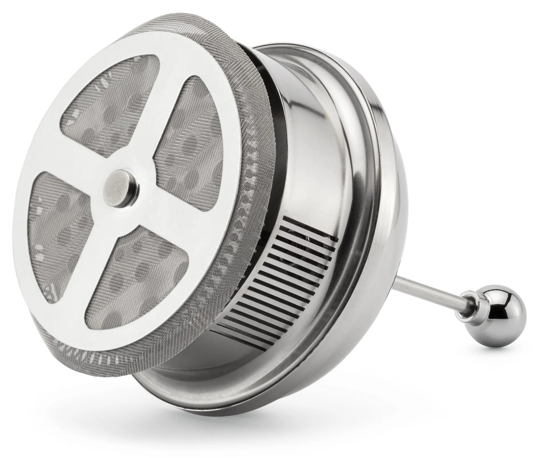 Uns überzeugen indes auch die inneren Werte dieses Kaffeebereiters, der seit den 1970er Jahren von Bodum produziert wird. Exklusiv für uns wird der Deckel samt Rückhaltesieb nicht aus Kunststoff, sondern aus Edelstahl hergestellt. Der Kannenkörper besteht aus Borosilikatglas, der Rahmen wird ebenfalls aus Edelstahl gefertigt. Für den Griff aus Walnussholz wurde am Produktionsstandort in Portugal eigens ein Set neuer Werkzeuge aufgesetzt.