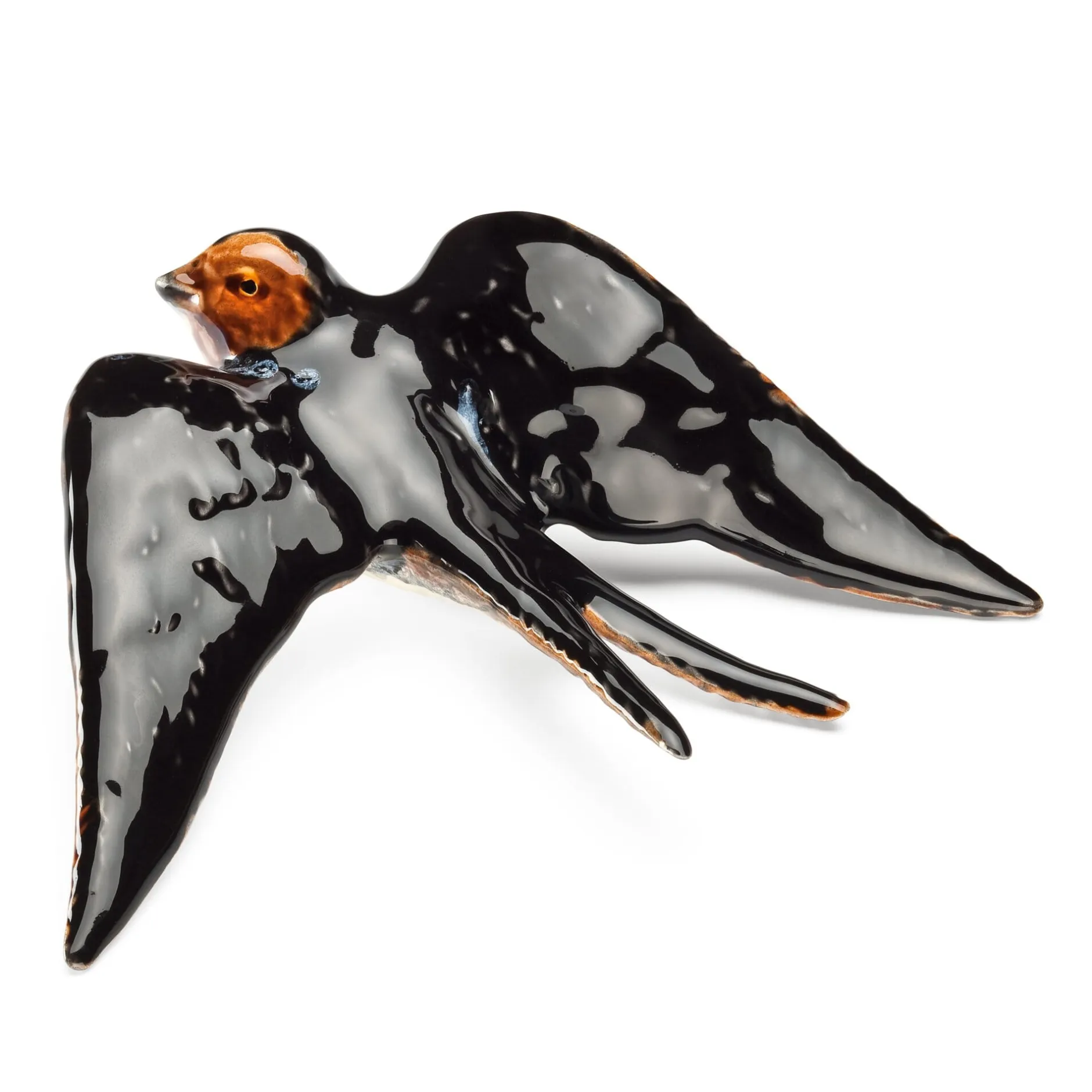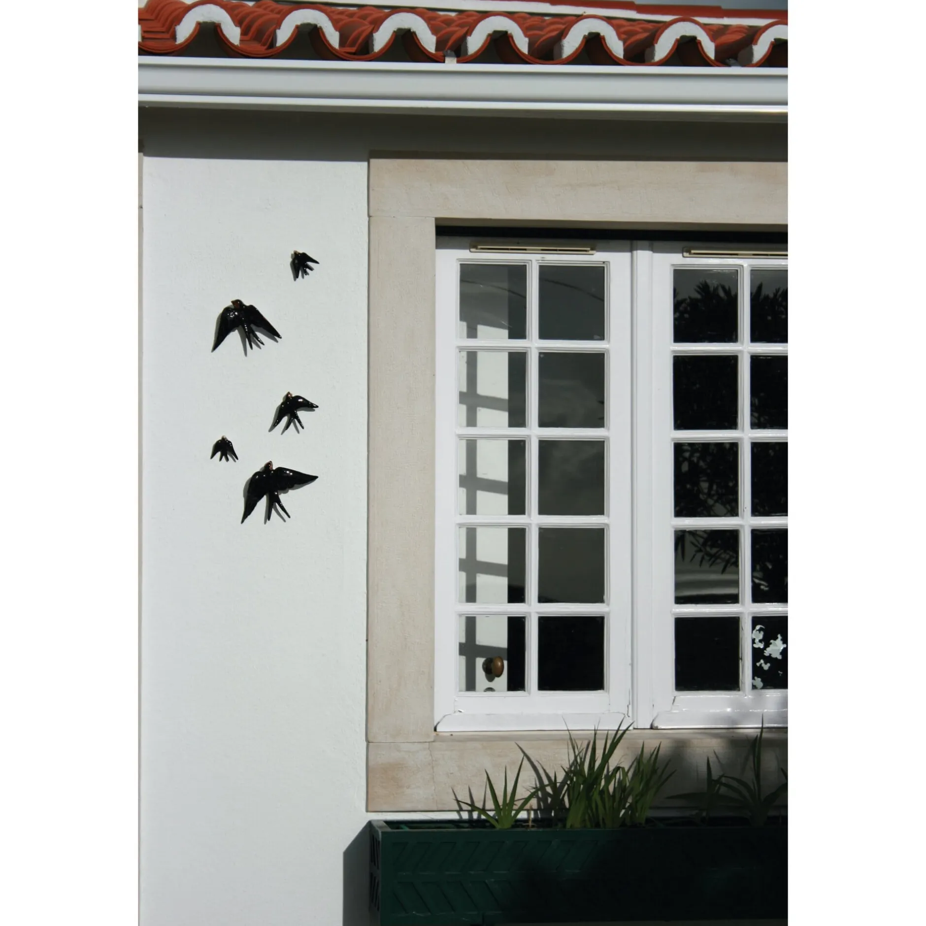 In Portugal ein schöner Brauch seit über hundert Jahren: Rauchschwalben wie diese, aus Keramik und handbemalt, schmücken als Vorboten des Frühlings im ganzen Land Häuserfassaden, Balkone und Innenräume. Gestaltet hat den Vogel im Jahr 1891 der bekannte portugiesische Künstler und Karikaturist Rafael Bordalo Pinheiro, im Original kann man seine Entwürfe noch heute in Lissabon in der berühmten Tabacaria Monaco finden. Seit jener Zeit ist der Keramikvogel als ständiger Begleiter und „Hausfreund“ für die Portugiesen fast zu so etwas wie einer nationalen Ikone geworden.