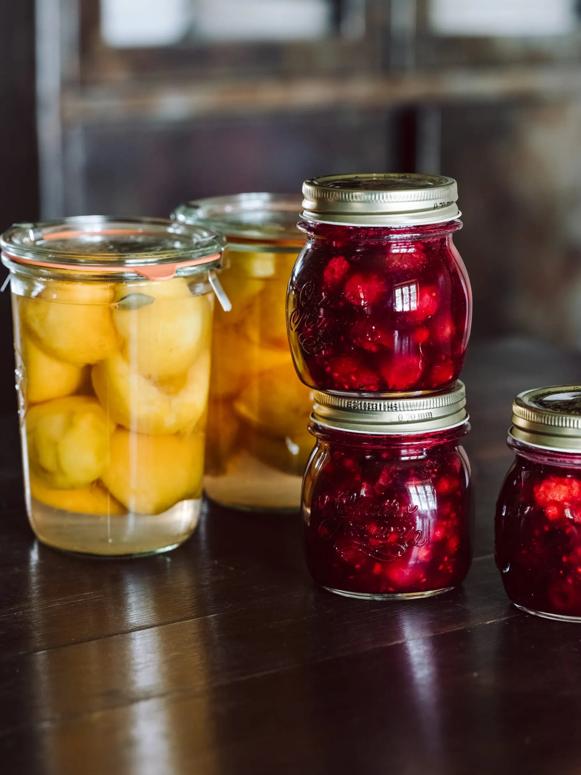 Praktische, wiederverschließbare Saftflaschen und Einkochgläser mit Schraubdeckel, aus Pressglas. Das Einkochen und Haltbarmachen von Früchten und Gemüsen aus eigener Ernte gelingt mit ihrer Hilfe garantiert: Mit dem Einkochgut befüllt, werden die Gläser im Kochtopf in siedendem Wasser pasteurisiert. Der Vakuum-Schraubdeckel zeigt den „Einkocherfolg“ an: Sie sehen die nach unten eingezogene Delle in der Mitte des Deckels und hören – Wochen oder Monate später – beim ersten Öffnen das charakteristische Knacken. Eine Gebrauchsanweisung liegt jeweils bei.