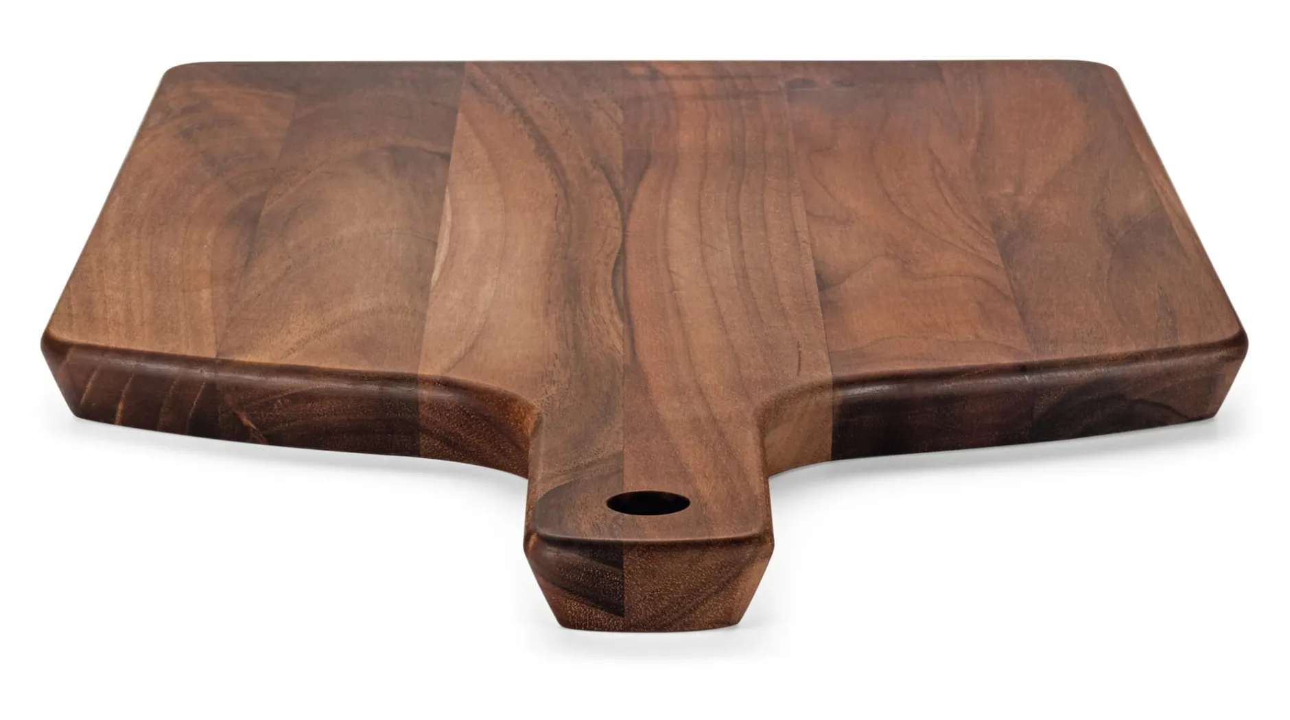 Schneiden, anrichten, servieren. Stielbrett aus Walnuss- oder Eichenholz.