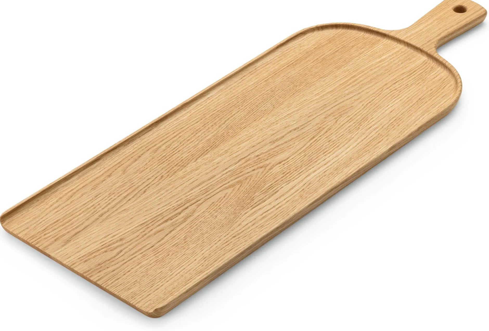 Der Stielgriff ermöglicht nicht nur das Transportieren des voll besetzten Brettes aus der Küche ins Wohn- oder Esszimmer. Er vereinfacht auch das Arrangieren auf dem gedeckten Tisch, derweil der umlaufende Rand Ihre ausgewählten Köstlichkeiten daran hindert, herunterzurollen. Unser Servierbrett kommt von Breka in Slowenien und wird in bester handwerklicher Manier aus Eichenholz gearbeitet. Das Holz wird nach dem Zuschneiden, Schleifen und Glätten noch geölt. Diese Art der Oberflächenbehandlung bringt die natürliche Maserung der Eiche in besonderer Weise hervor. Tipp: zur Reinigung nach Gebrauch feucht abwischen. Tragen Sie zur Pflege der Holzoberflächen gelegentlich ein wenig Speiseöl auf.