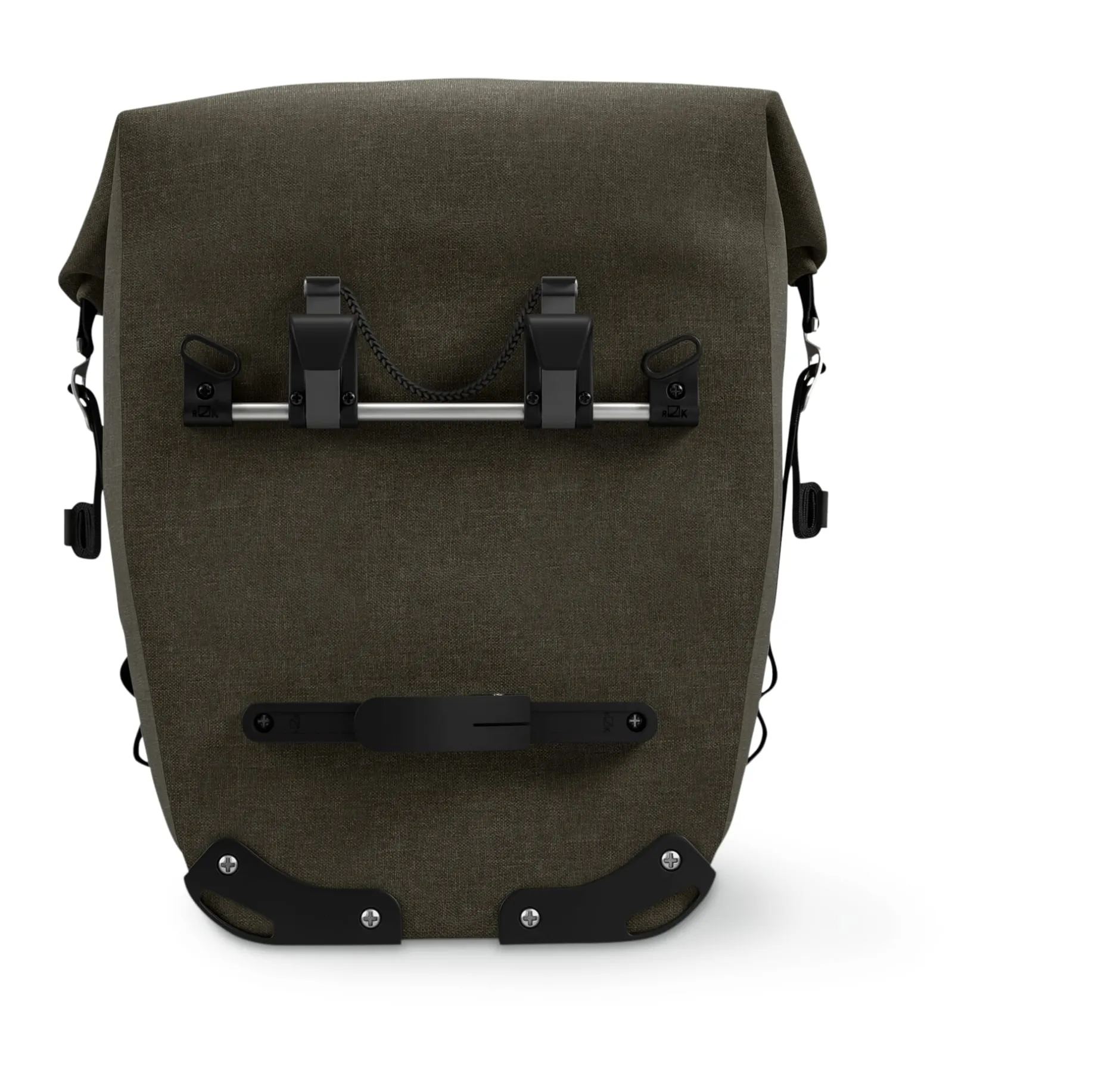 Von ungewöhnlicher Haptik, detailreich ausgestattet und in höchster Funktionalität: Wir kennen keine Serie von Gepäckstücken für den Transport auf dem Fahrrad, die in Sachen Qualität, Dauerhaftigkeit und Gestaltung mehr überzeugt. Das verarbeitete Material besitzt eine textile Optik, ist wasserdicht und besteht weitestgehend aus einer geschweißten Konstruktion.