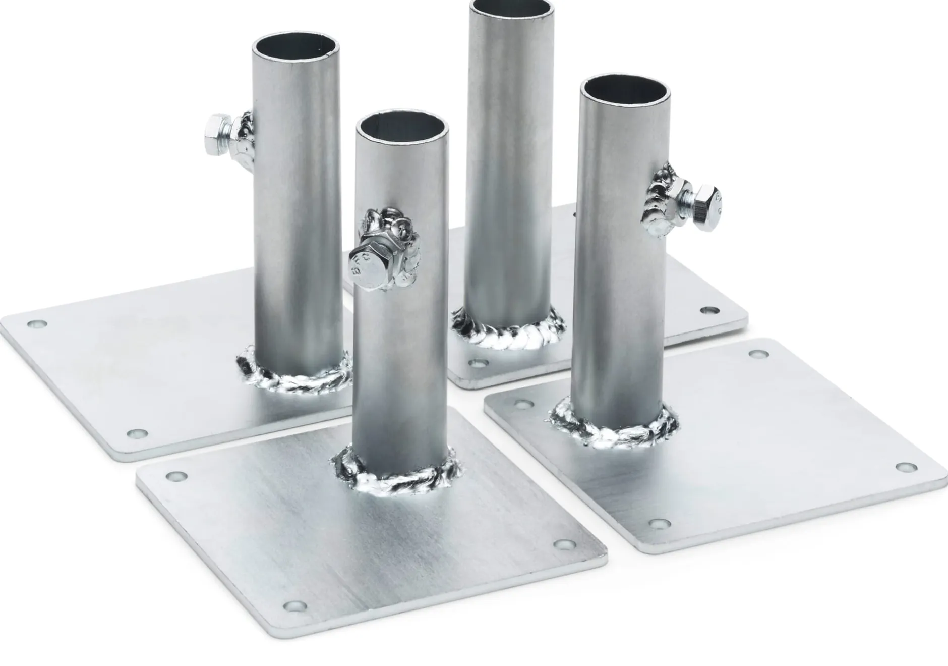 Standardmäßig werden die Tomatenhäuser aus unserem Sortiment inklusive Bodenhülsen geliefert, die für die Fixierung des Gestänges ausschließlich in offenem Gartenboden vorgesehen sind. Das ist einerseits unkompliziert, da die gesamte Konstruktion ohne gegossene Punktfundamente auskommt und das Aufstellen der Folienhäuser somit vereinfacht wird. Andererseits war es damit Stadtgärtner*innen bislang nicht möglich, Tomatenpflanzen, die sie in Töpfen und Kübeln auf der Terrasse oder vielleicht im Hinterhof gepflanzt hatten, ebenso vor Sommerregen und Feuchtigkeit zu schützen. Sie bauen selbst auf kleinem Raum Tomaten an und kennen diese Herausforderung? Dann ist diese einfache Lösung des Problems etwas für Sie: vier stabile Standfüße aus verzinktem Stahl im Set, die auf festen Boden – etwa die Terrassensteine die Pflasterung im Hof – aufgeschraubt werden können. Praktischerweise sind Bohrlöcher gleich ab Werk vorgesehen, was das Anbringen vereinfacht.
