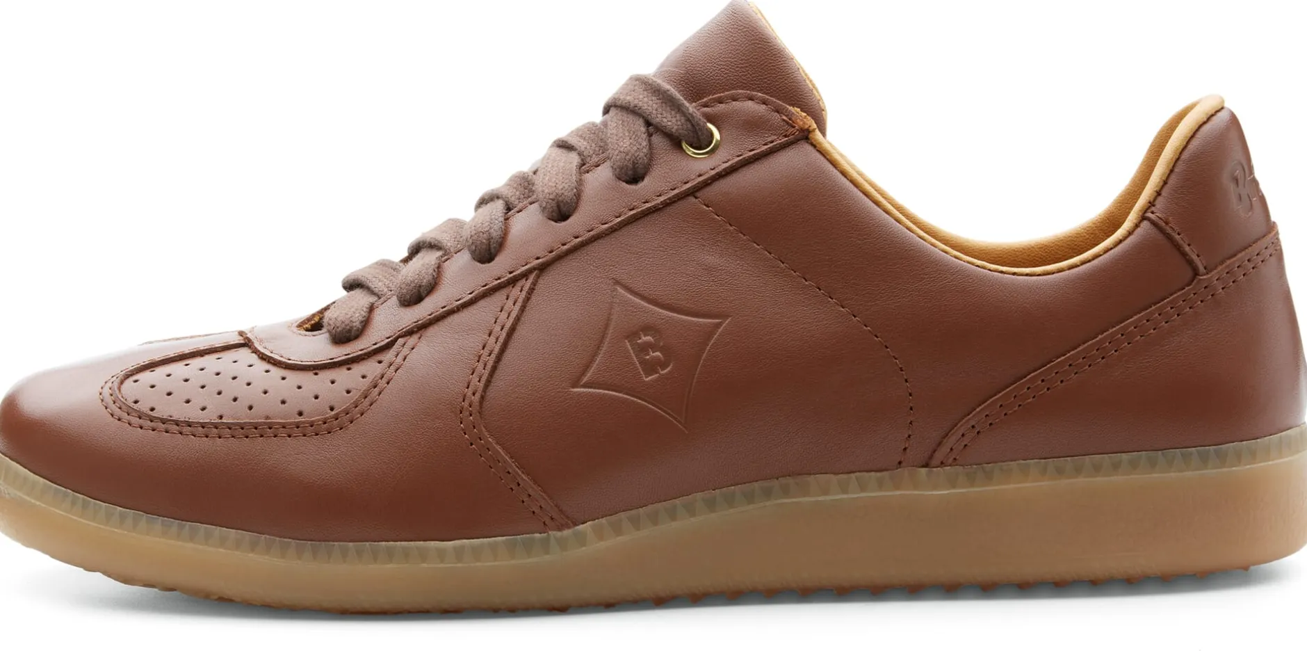 Was Sportler*innen recht ist, ist Trainer*innen billig. So entstand in den 1970er Jahren der Brütting Trainer, ein Schuh der zuvorderst für den Hallensport konzipiert war. Brütting hat diesen Klassiker aus eigenem Hause aufgegriffen, behutsam modernisiert und neu aufgelegt. Sein Obermaterial ist ein weiches Rindleder. Es ist am Vorderschuh perforiert, was für eine gute Fußbelüftung sorgt. Das Futter und die gepolsterte Decksohle sind ebenfalls aus Rindleder, das jedoch, da es direkt mit dem Fuß in Kontakt kommt, chromfrei gegerbt ist. Die Decksohle ist herausnehmbar und kann bei Bedarf durch eigene Einlagen ersetzt werden. Die Staublasche ist ebenfalls gepolstert, was den Tragekomfort erhöht. Die leicht profilierte Laufsohle aus Gummi gibt guten Grip. Sie ist bewusst in einem eher hellen Farbton ausgeführt, der einerseits gut zum Leder passt und andererseits keine Spuren auf dem Hallenboden hinterlässt.
