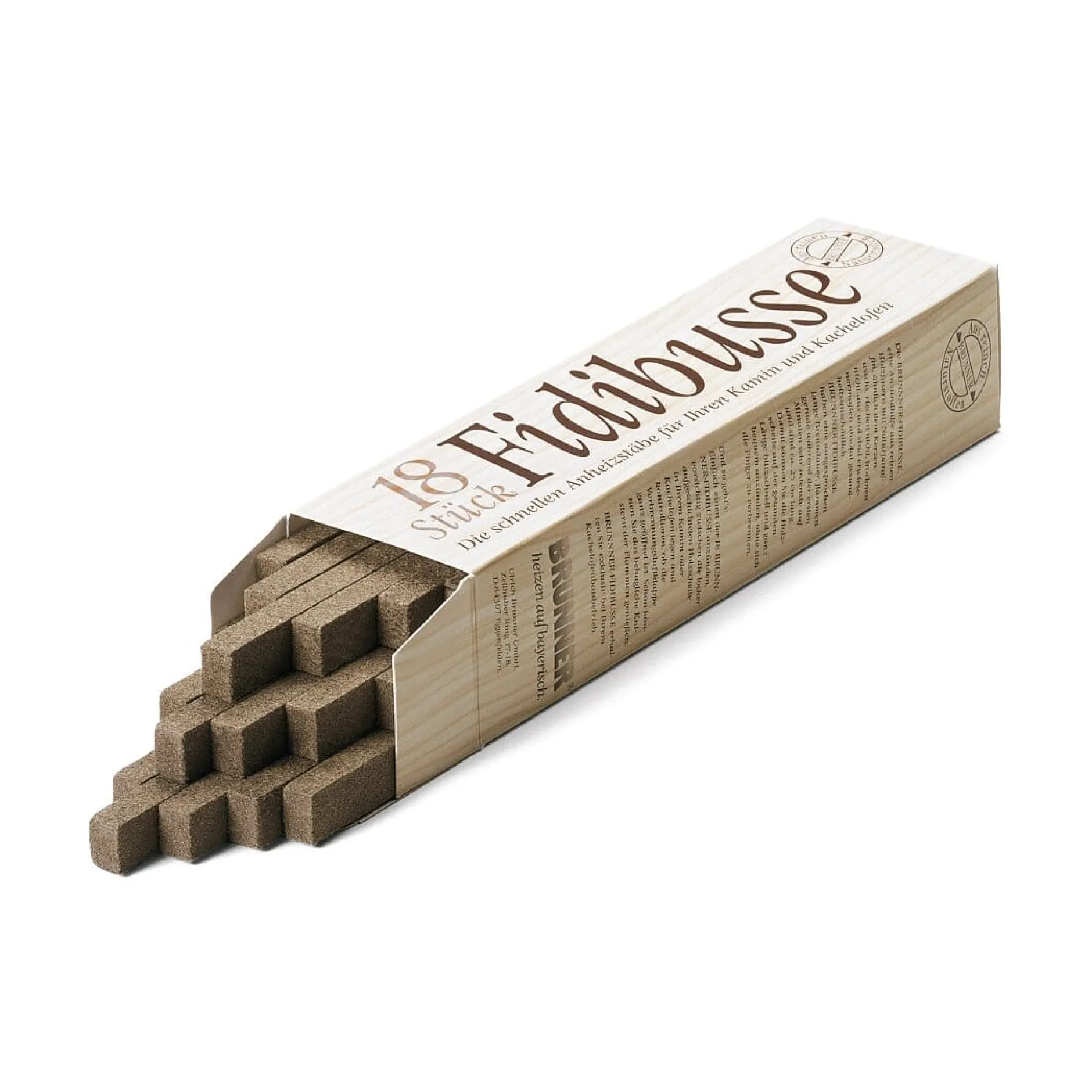 Holzanzünder aus reinen Holzfasern, getränkt mit Paraffin.