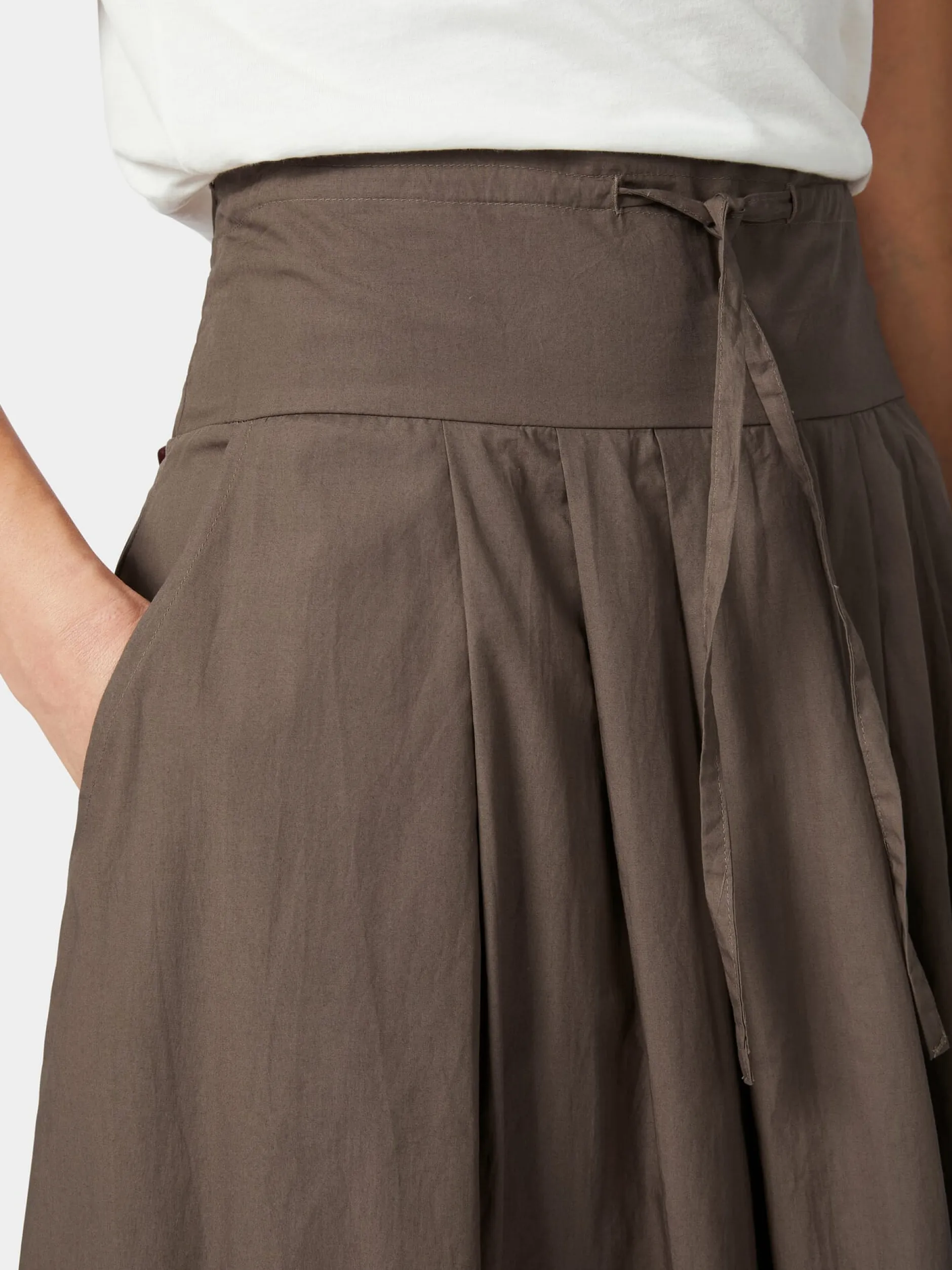 Mit seinem weich fließenden Fall und seiner komfortablen, weit ausgestellten Passform sorgt dieser etwa knöchellange Rock für einen eleganten, schwungvollen Auftritt, wozu auch die Bundfalten vorn und hinten beitragen. Der Formbund garantiert einen guten, vorteilhaften Sitz; vorn ist er mit einem Bindeband im Tunnelzug ausgestattet, wodurch die Taillenweite individuell angepasst werden kann. Care By Me fertigt den leichten und luftigen Stoff aus hautsympathischer, kontrolliert biologisch angebauter Baumwolle, was den Tragekomfort noch erhöht. Geschlossen wird der Midirock mit einem seitlichen, nahtverdeckten Reißverschluss. Zwei Seitentaschen bieten Platz für Kleinteile des täglichen Bedarfs.