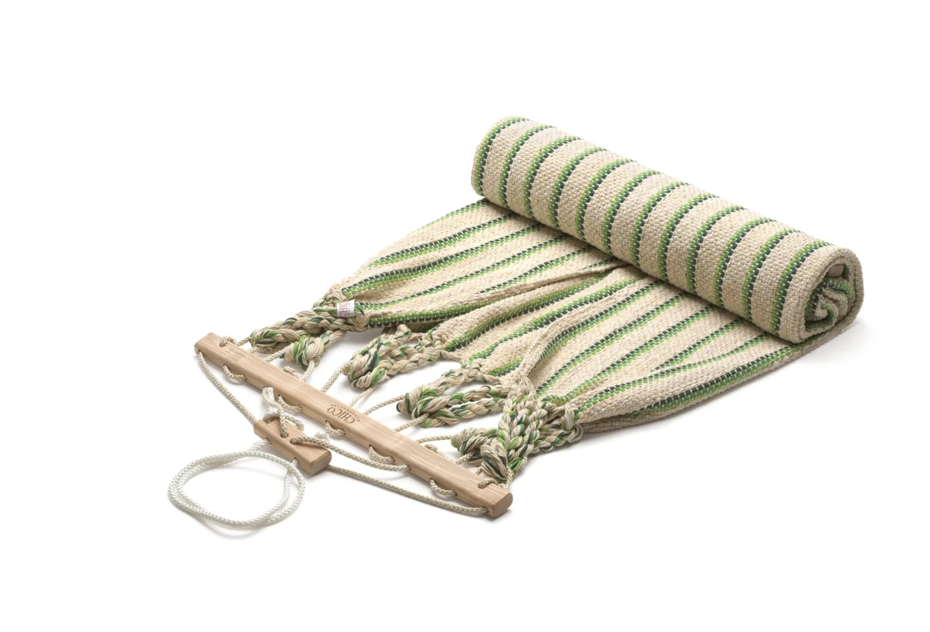 Die Hängematten werden in einer eigens entwickelten Endloswebtechnik gearbeitet, sie sind nicht nur von einer Materialopulenz, die man schon beim ersten Griff spürt – sie sind vor allem auch außerordentlich reißfest. Ein verstellbarer hölzerner Fixierstab verhindert das Zusammenrutschen der Matte, eine Spannvorrichtung ermöglicht Längenänderungen. Einzig beim Tragseil verwendet der Hersteller ein synthetisches Material, eine UV- und witterungsbeständige Polyestermischung, die die langfristige Belastbarkeit der Hängematte gewährleistet.