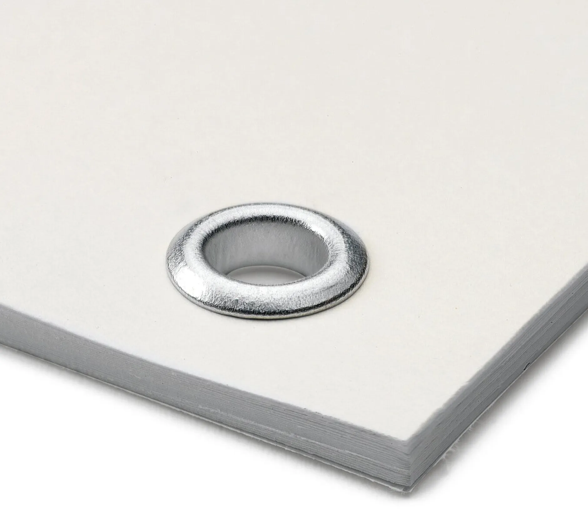 Ersatzösen für den Ösenlocher Stahl. Der Tischlocher kann bis zu 36 Blatt starke Dokumente lochen und in einem zweiten Arbeitsgang mittels dieser Aluminiumösen binden.