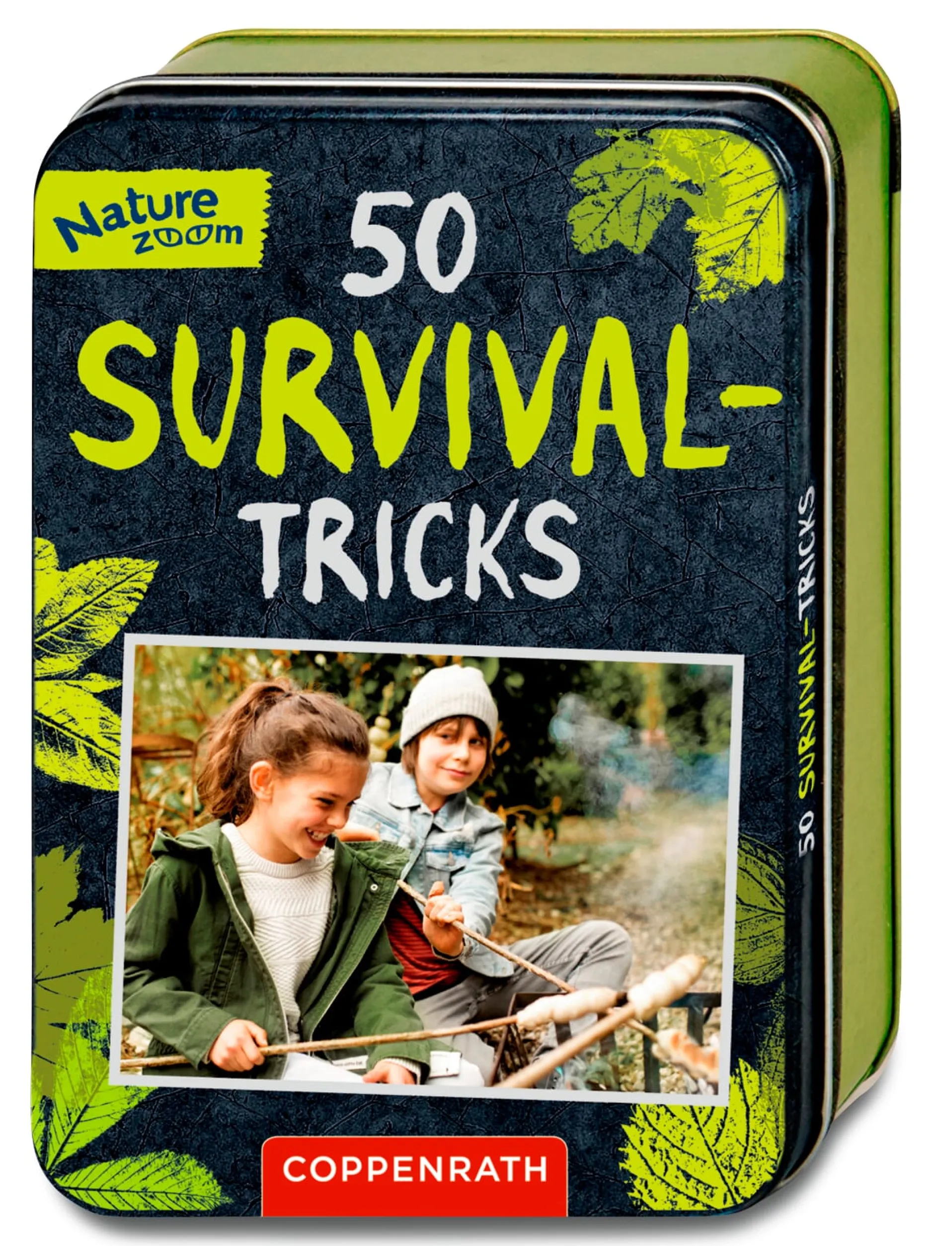 - Outdoortauglich: stabile, abwischbare Karten in einer Blechdose
