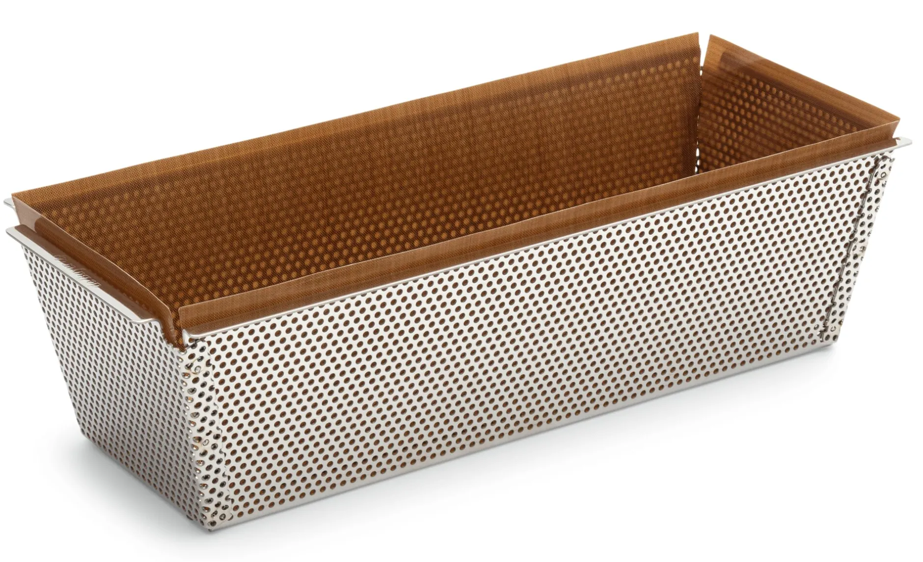 Luftig-weiches, buttriges Hefegebäck französischer Art ist eine Spezialität dieser Königskuchenform aus dem Hause de Buyer. Ordentliches Durchkneten und eine ausreichende Ruhezeit vorausgesetzt, geht der feste Teig darin besonders gut auf, die Krume wird im Ofen fluffig und die Kruste erhält den für Brioche typischen, zart-mürben Biss. Das Backergebnis wird begünstigt, da die Kastenform mit herausnehmbarem Boden aus rundherum perforiertem Edelstahl gefertigt ist. Das bedeutet eine ausgeglichene Wärmeverteilung. Zudem gelangt die Wärme des Ofens (durch Luftaustausch) direkt an das Backgut. Natürlich können Sie in dieser Backform genauso gut einen klassischen Hefezopf, süßes oder nach Wahl herzhaftes Zupfbrot, (Vollkorn-)Brot oder auch einmal eine Pastete backen.