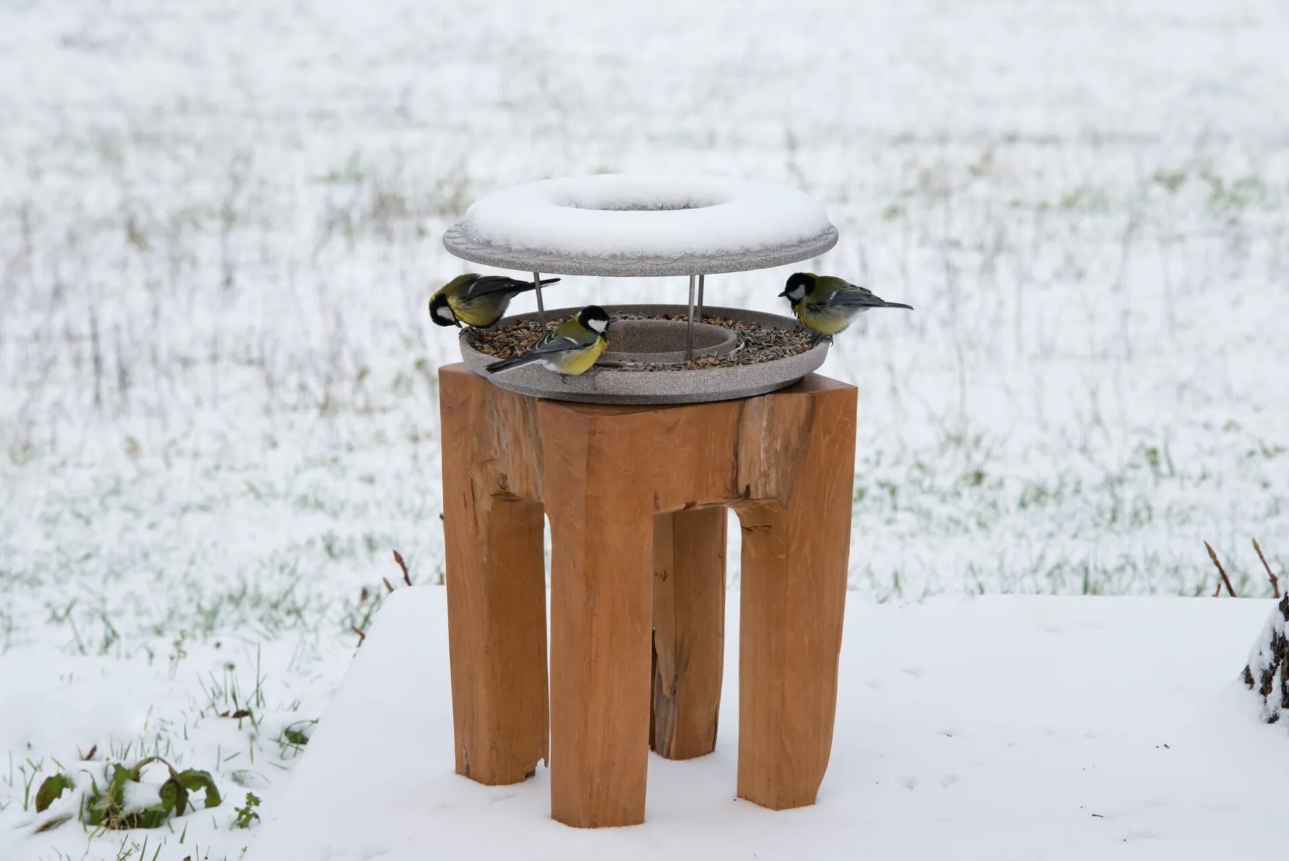 Frostbeständiger Futterplatz aus Granitkeramik.