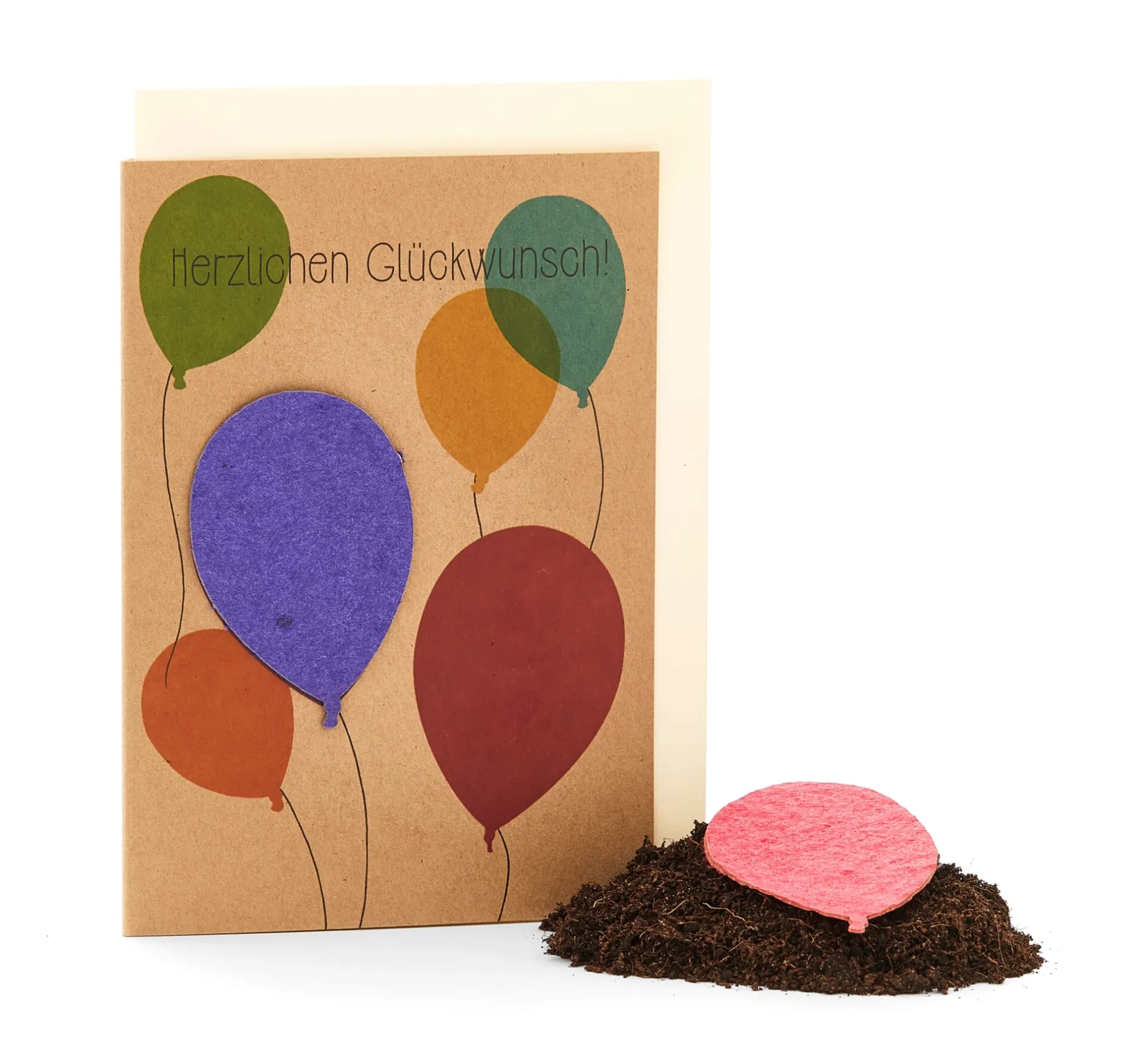 Die*der Beschenkte* erhält mit der Grußkarte im Klappkartenformat Saatpapier oder (je nach Motiv) einen Saatgutstecker. In etwas Erde im Blumentopf oder ins Beet gelegt beziehungsweise gesteckt, lassen sie sich recht einfach zum Erblühen bringen. So liefert der Blumengruß lang anhaltend Freude! Das jeweilige Kartenmotiv bleibt dabei sogar erhalten, da es zusätzlich auf die Vorderseite der Karten aufgedruckt ist.