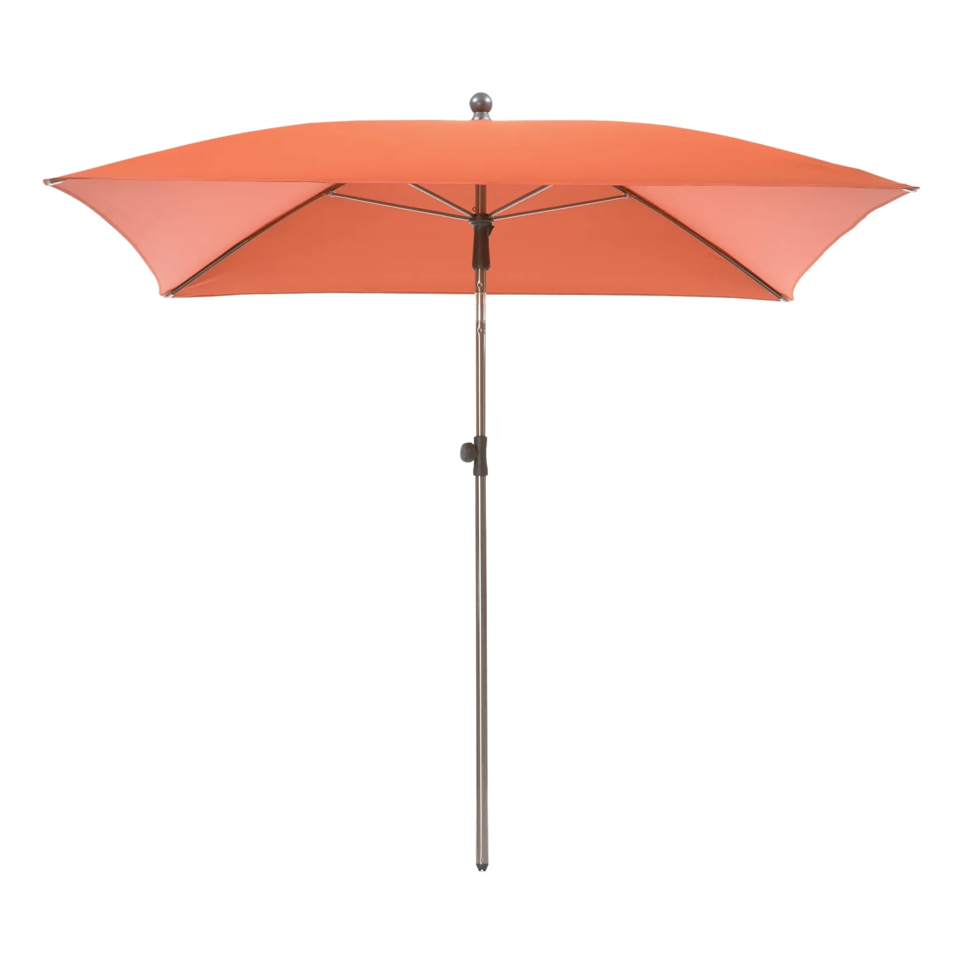 Edelstahlmast (Oberrohr Ø 2,7 cm, Unterrohr Ø 3 cm). Pulverbeschichtete Paragonschienen. Drehknauf Polyamid. Bespannung 100% Polyester (Flächengewicht 180 g/qm). Hergestellt in Österreich. Quadratisch, ca. 1,8 × 1,8 m. Stufenlos höhenverstellbar von 1,8–2,4 m. Neigungswinkel bis 35°. Gewicht 2,8 kg. Ohne Schirmständer.
