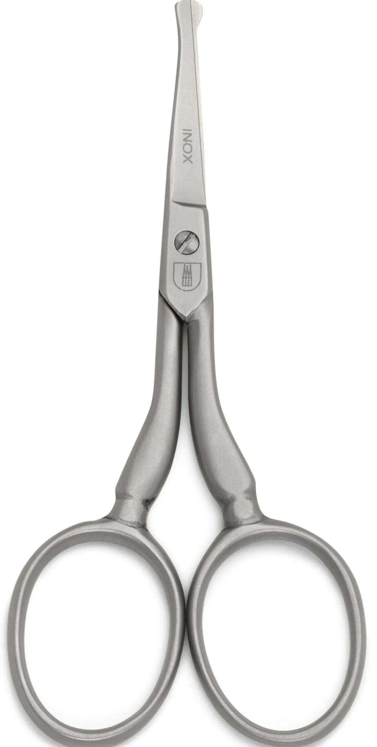Die Nasen- und Ohrhaarschere ist mit einer Kugelspitze gearbeitet, die Verletzungen verhindert. Dank der aufgebogenen Schneide (wie bei einer Nagelschere) ist die Schere leicht zu verwenden, da sie die Anatomie – keine Nase ist gerade – berücksichtigt. Zudem ist eine Schneide mit einer feinen Mikrozahnung versehen, sodass jedes Haar sicher gefasst wird und die Schneiden nicht abrutschen. Die Nasen- und Ohrhaarschere ist auch zum Bartstutzen geeignet.