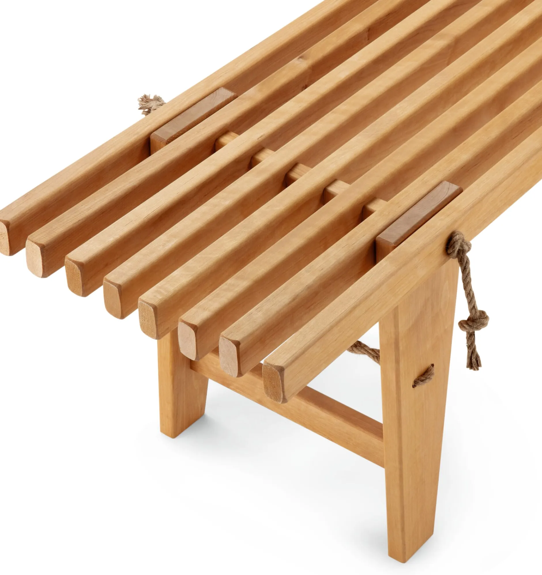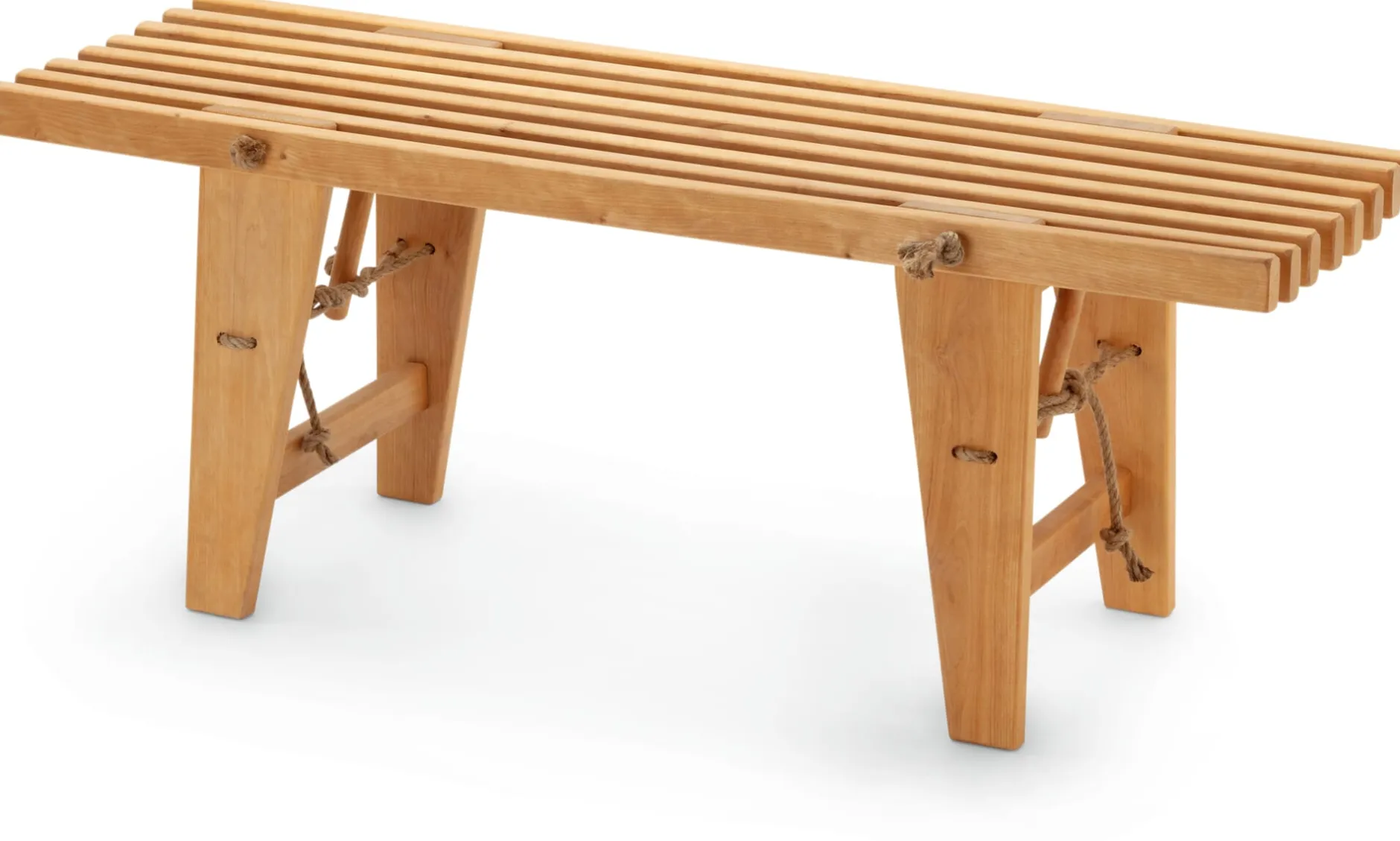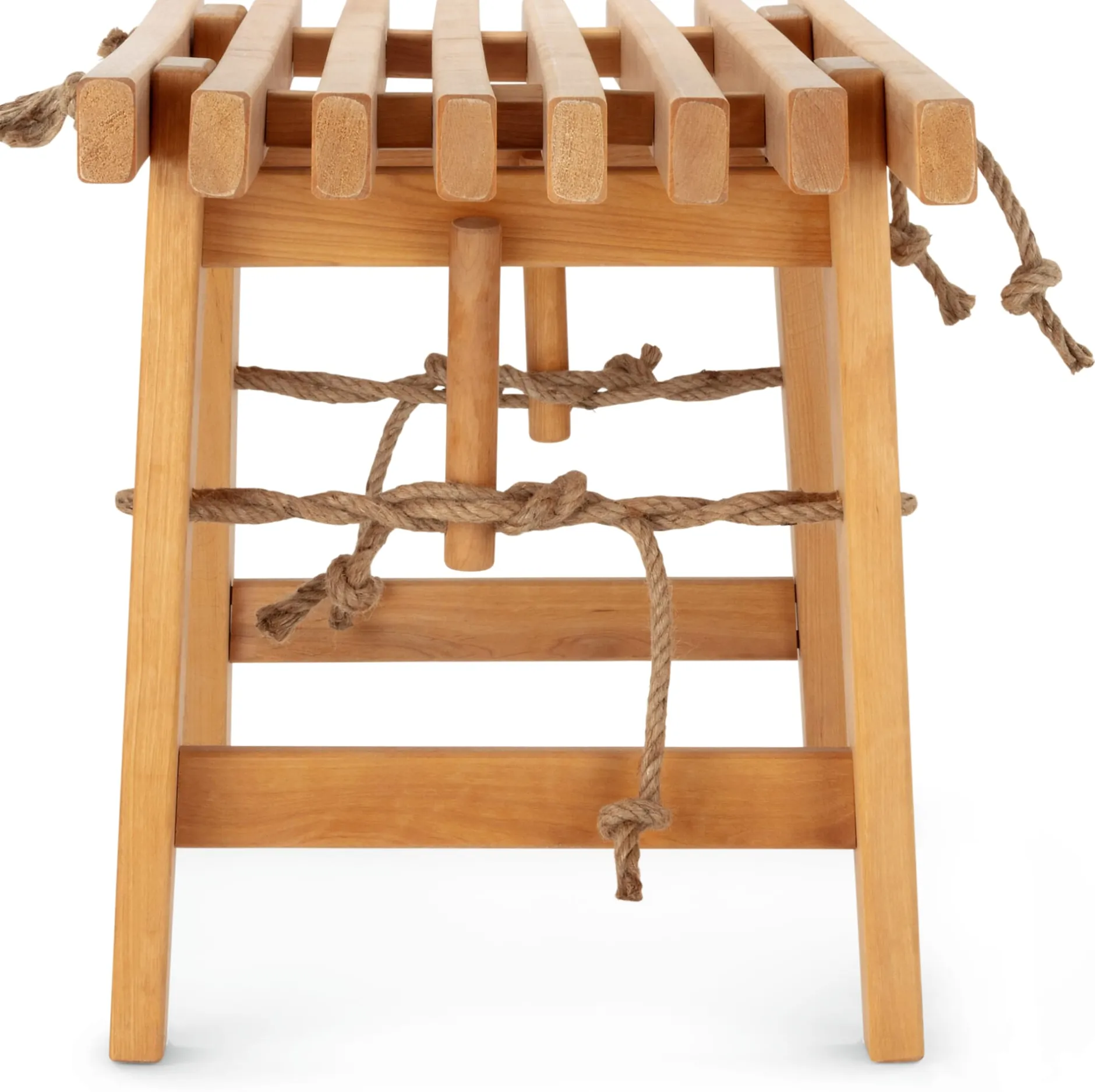 Erlenholz (Herkunft Estland) geölt. Seile aus Hanf. Hergestellt in Estland. Länge 120, Breite 37,5 cm, Höhe 45 cm. Gewicht 9,6 kg. Belastungsgewicht max. 140 kg.