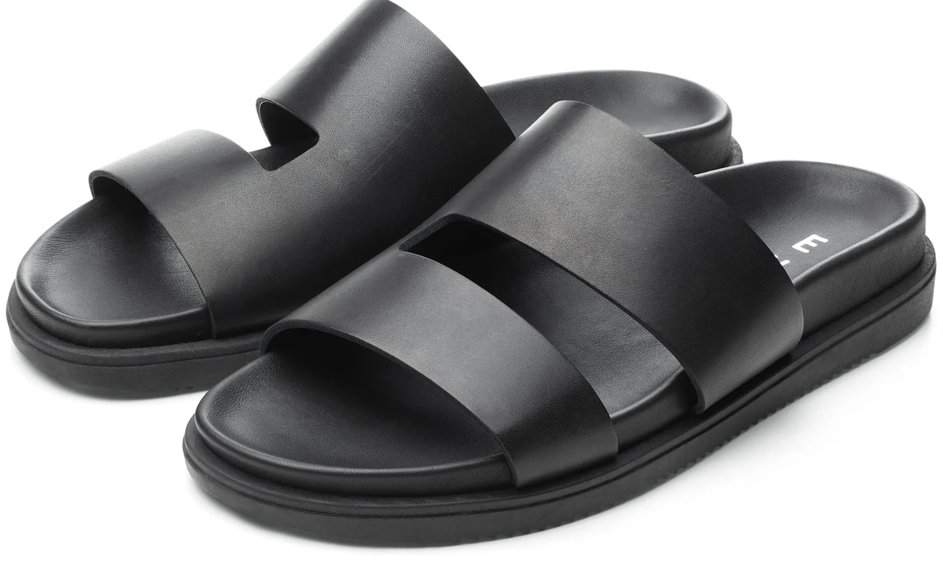 Diese Lederpantolette kommt mit einer modernen, minimalistischen Optik daher. Dabei folgt die Form ganz der Funktion. So geben die breiten Riemen guten Halt und die anatomisch geformte Decksohle passt sich angenehm dem Fuß an und sorgt für ein gutes Tragegefühl. Die geriffelte Gummisohle schließlich gibt guten Grip. Damit ist die Pantolette ein guter Begleiter für jeden Tag.