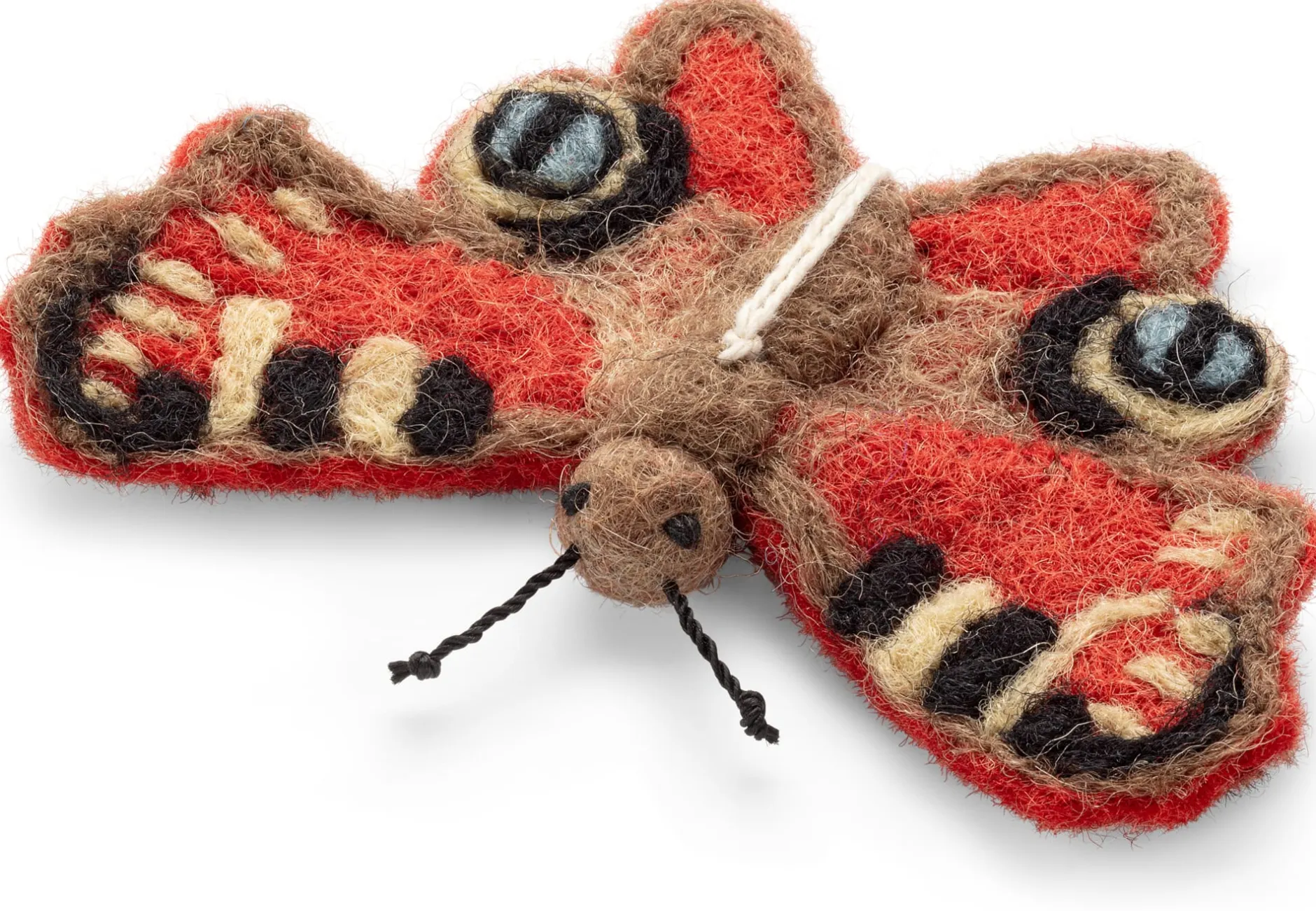Bessere Aussichten hat das Tagpfauenauge, das immerhin zum Schmetterling des Jahres 2009 gekürt wurde. Sein von Hand aus neuseeländischer Schurwolle gefilzter Namensvetter wird sich darüber hinaus beständiger benehmen als die wankelmütigen Gestalten der griechischen Mythologie. Auch auf längere Sicht wird das Pfauenauge Ihre dekorativen Arrangements von Frühjahr bis Winter mit seiner farbenfrohen Ausstrahlung bereichern – in der Zweigen eines Straußes oder in der mit Blättern und Blüten ausgelegten Schale, auf dem Gedeck der Sonntagstafel oder auch als kleines Geschenk.
