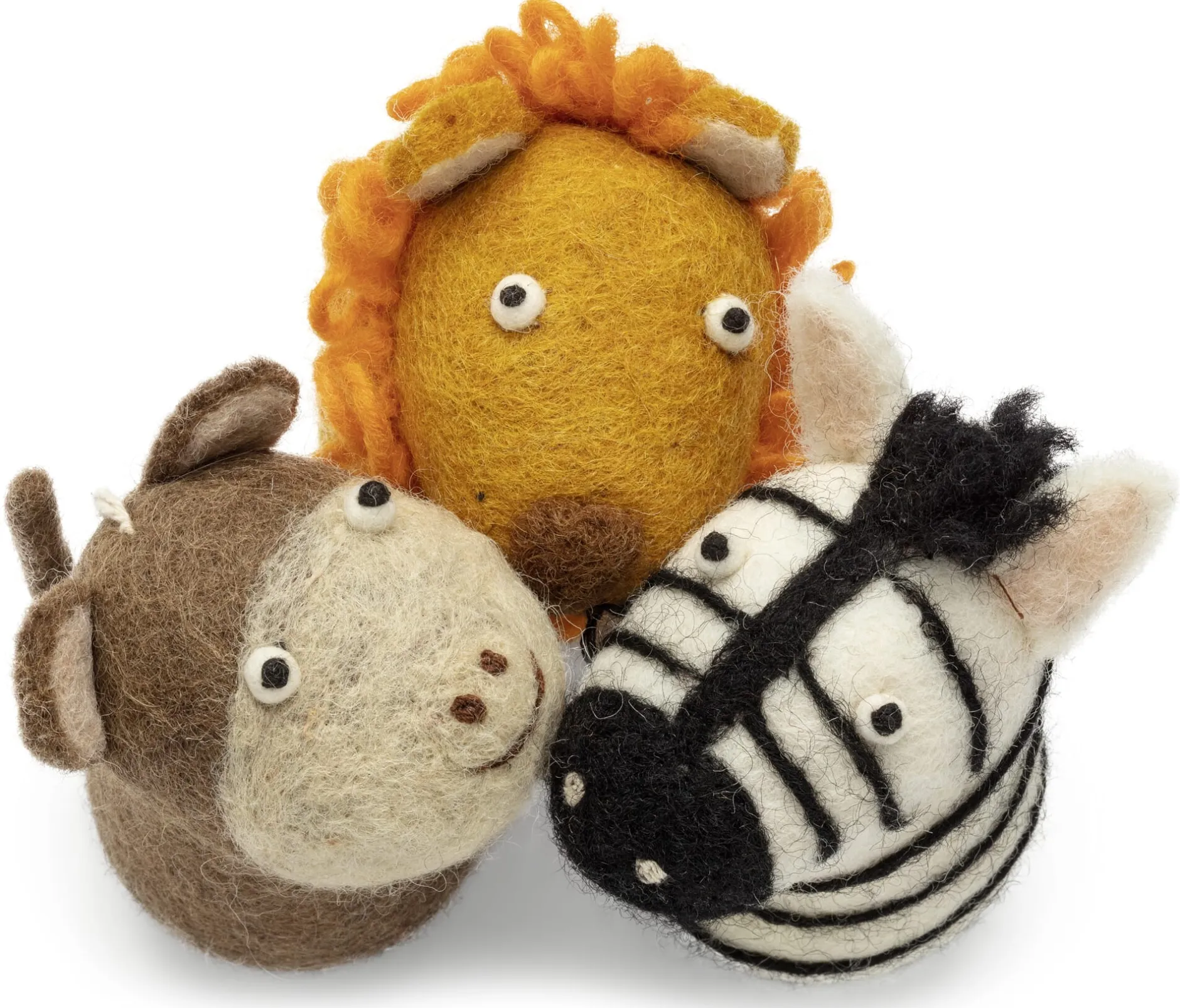 Kommt das Kind nicht nach Afrika, kommt Afrika eben zum Kind. Diese handgefilzten Figuren machen Kinder auch außerhalb der Serengeti mit deren Wildtieren vertraut. Giraffe und Elefant, Löwe und Zebra und obendrein der Affe heben in ihrer minimalistischen Gestaltung ein Charakteristikum der Tiere anschaulich hervor. So stimmen sie nicht nur auf den Ausflug in den Zoo ein, sondern bereichern ebenso ansprechend das Mobile über dem Kinderbett oder den Fensterschmuck – oder sie übernehmen die Hauptrollen während der Erlebnis-Safari auf der Spielfarm des Kinderzimmers. Und wer weiß, vielleicht kommt Ihr Kind ja doch noch nach Afrika, dann kennt es sich mit den Tieren der Serengeti schon ziemlich gut aus.