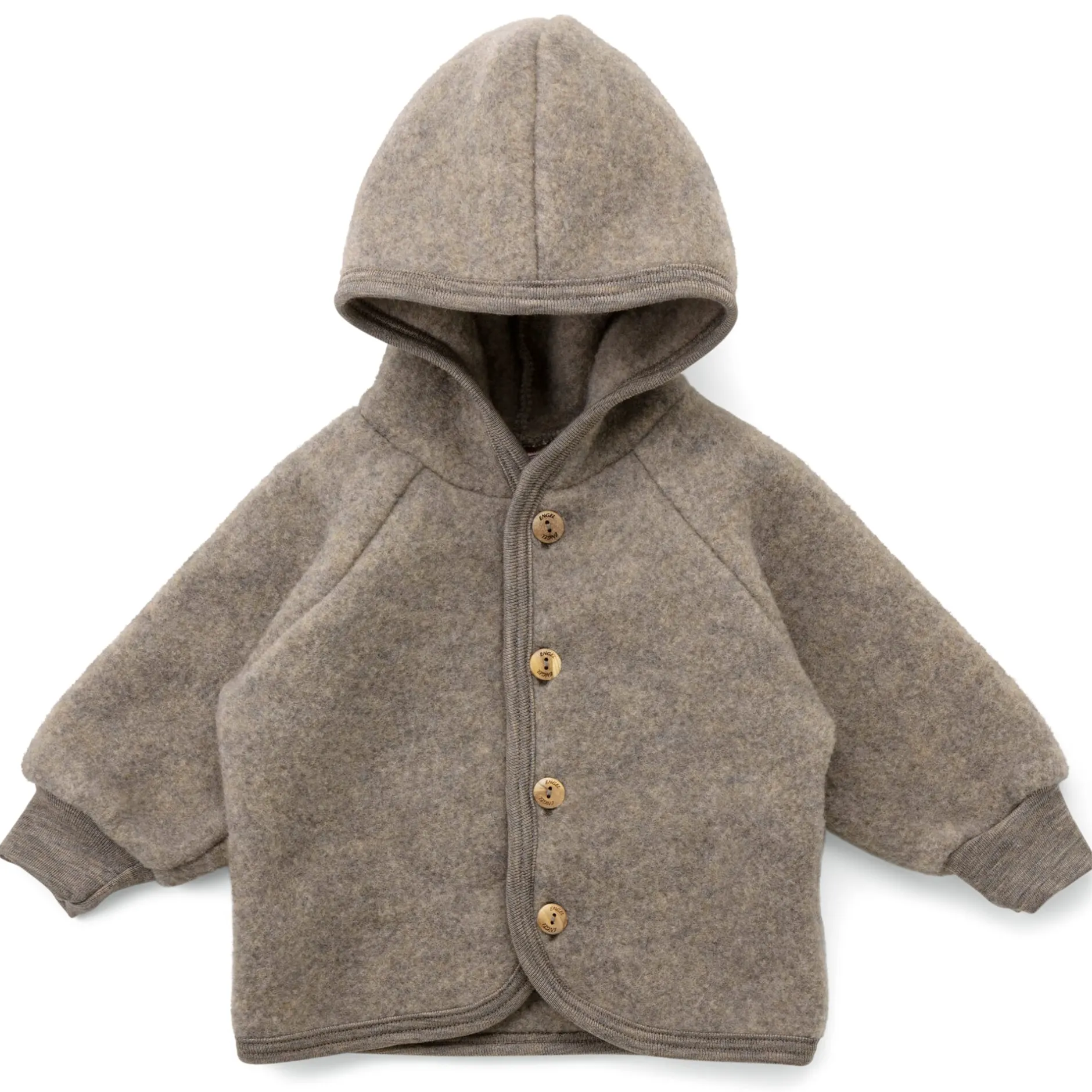 100% Schurwolle. Knöpfe aus Olivenholz. Hergestellt in Deutschland.