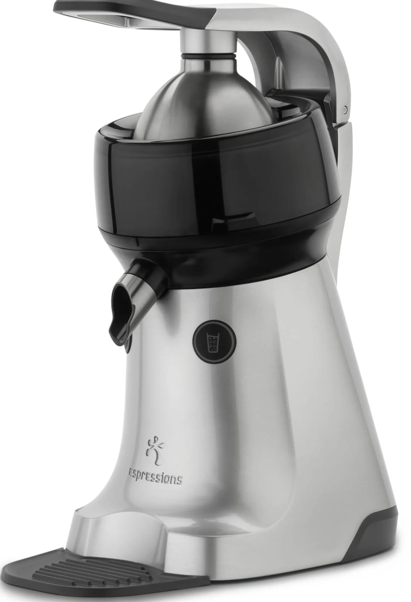Der Juicer liefert frisch gepressten Orangensaft im Handumdrehen. Sie haben die Wahl: Soll es lieber ein vollmundig-fruchtiger Saft mit etwas mehr Fruchtfleisch sein oder ein erfrischend klarer Saft, der weniger Fruchtfleisch enthält? Diese elektrische Zitruspresse von Espressions in den Niederlanden kann beides. Betätigen Sie ganz einfach eine der beiden Vorwahltasten, bestücken den robusten Presskegel aus geschmacksneutralem Edelstahl mit einer halben Orange (Grapefruit, Zitrone oder Granatapfel sind auch möglich) und drücken den Bügel leicht herunter: Schon kommt die Frischeproduktion in Gang und der Kegel dreht sich entweder rechts- oder links herum um die eigene Achse.