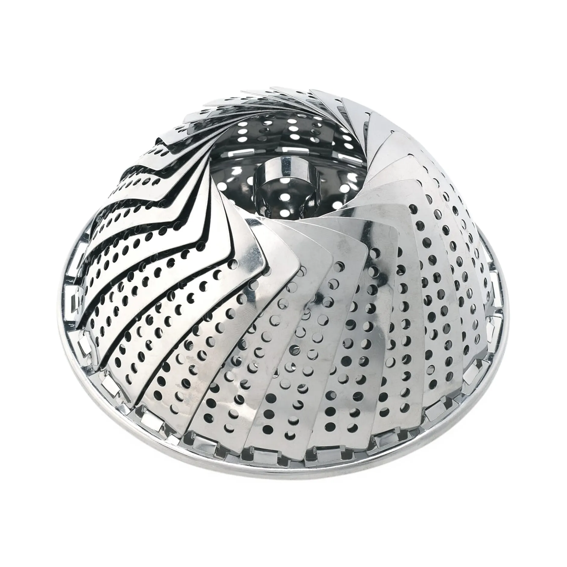 Dieses alte Gerät, eine gute Hilfe beim geschmack- und vitaminschonenden Garen frischer Gemüse, bieten wir in einer großen Ausführung an, die sich – mit beweglichen Blättern wie ein Blütenkelch – jedem Topfinnendurchmesser von 16,5–25 cm anpasst.