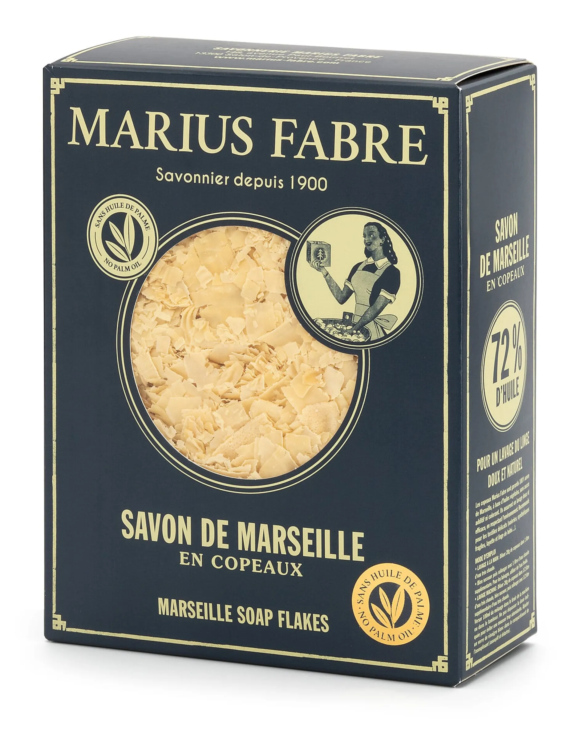 Seifenflocken aus rein pflanzlichen Ölen (Sonnenblumenöl und Kokosöl). Besonders für die Maschinen- und die Handwäsche geeignet, für alle Waschtemperaturen und alle Gewebe. Hergestellt in Frankreich.