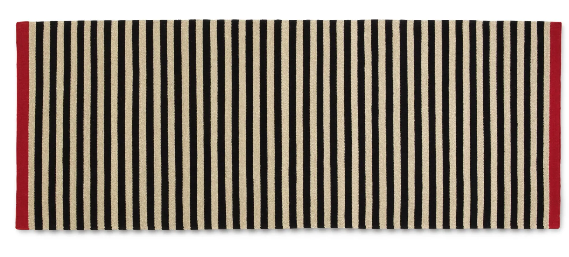 Mustergültig skandinavisch: Das klare Streifenmuster des handgewebten Teppichs fasst die Textildesignerin Lisbet Friis mit leuchtend roten Webabschlüssen ein. Beim dänischen Familienunternehmen Fabula trifft skandinavische Gestaltung auf orientalische Handwerkstechnik – durch die Kelim-Webart bildet der Schussfaden auf beiden Seiten des Teppichs das Muster, sodass dieser beidseitig verwendbar ist. Dank seiner geringen Florhöhe ist ROSEMARY vor allem auch in Durchgangsbereichen und Fluren einsetzbar. Hergestellt in Indien.