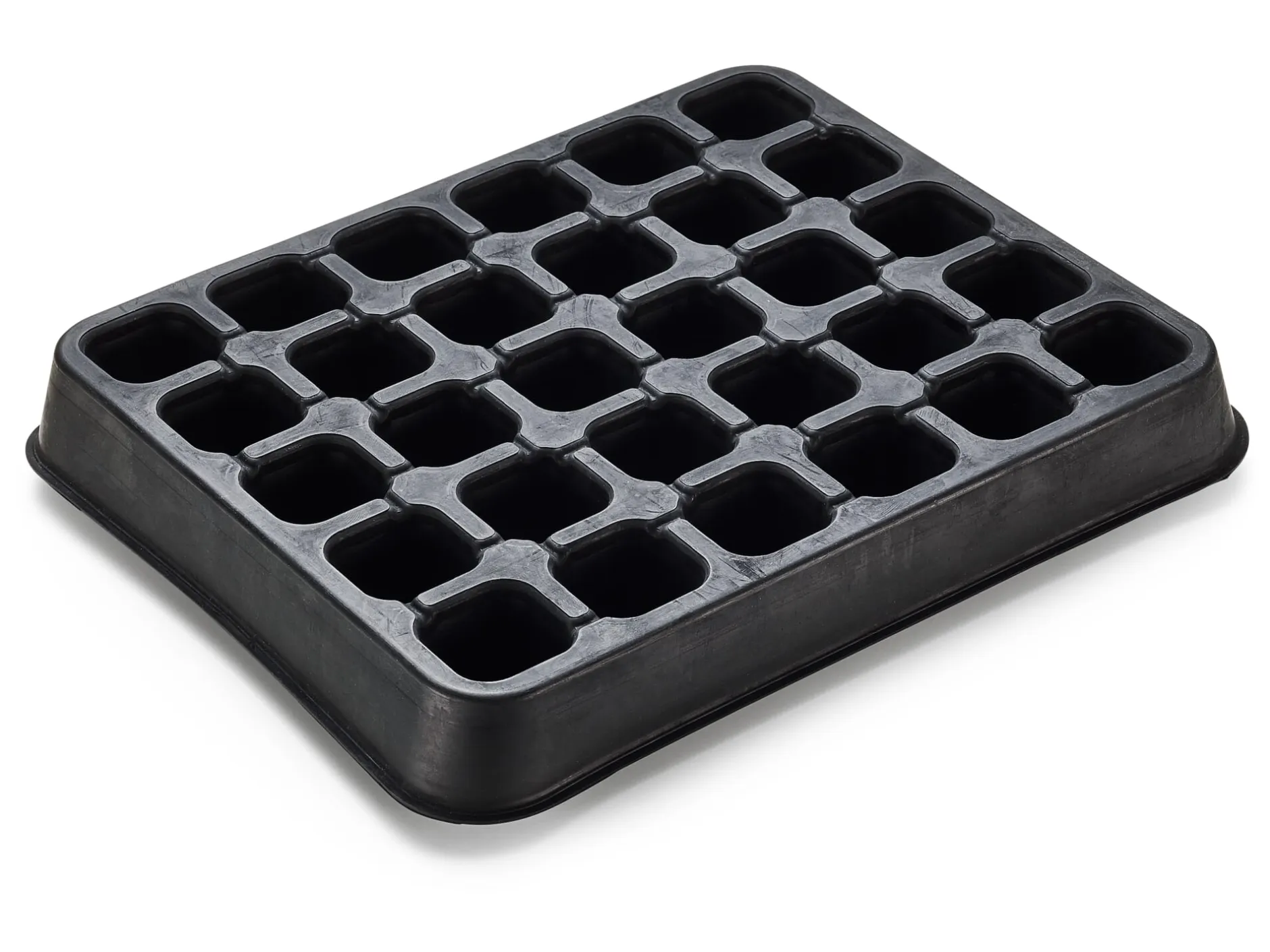 Mit 30 Zellen, je mit Wasserabzugsloch. Hergestellt aus zertifiziertem Naturgummi, Herkunft Sri Lanka. Gefertigt in Sri Lanka. Länge 27,5 cm, Breite 23,5 cm, Höhe 4 cm. Gewicht 245 g. Lieferung ohne Pflanzen. Hinweis: Haltbarkeit etwa zwei bis fünf Jahre, abhängig vom Grad der Beanspruchung, von Lichteinstrahlung und Bewitterung.
