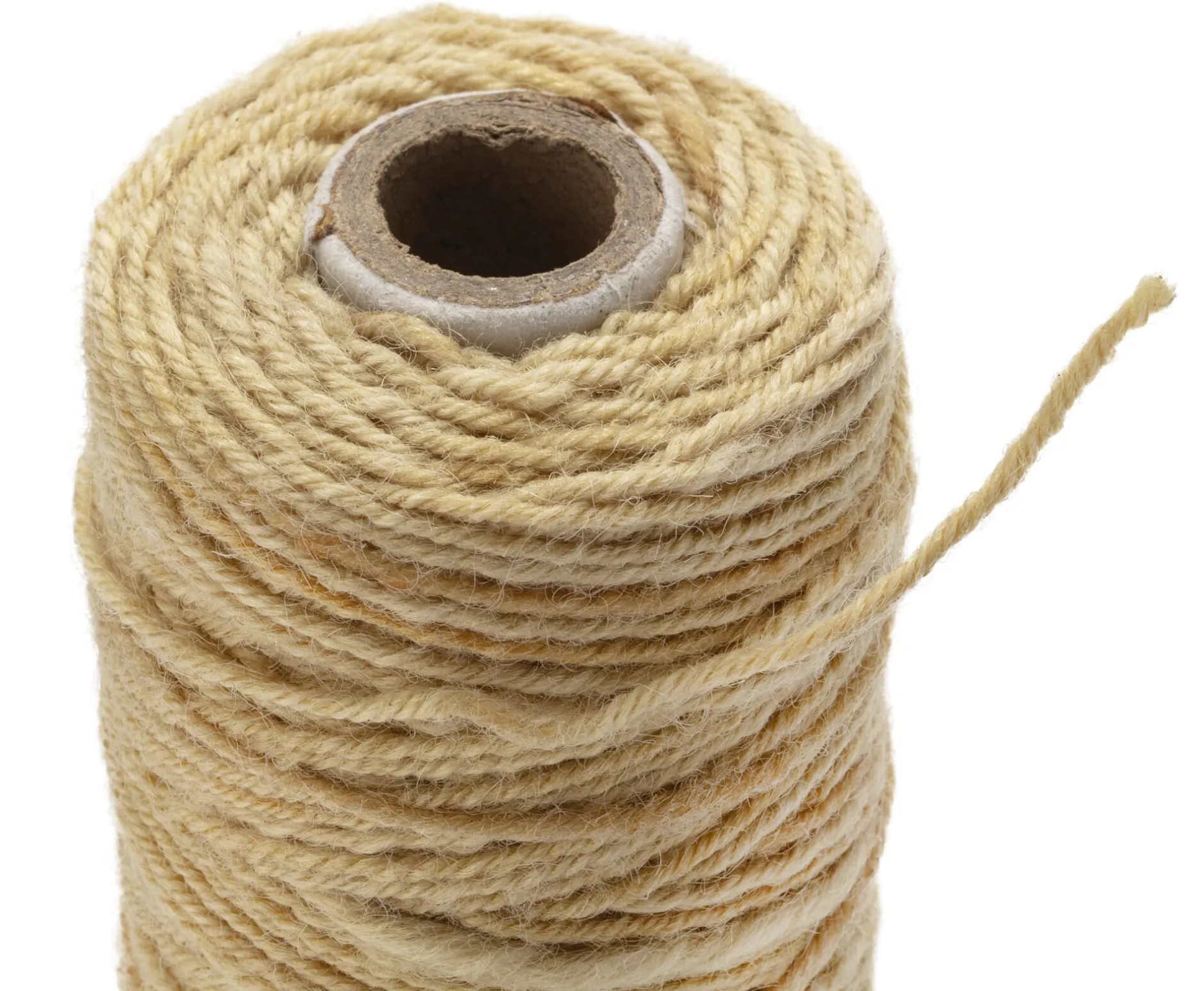 Aus Schafwolle und Naturkautschuk. Kann auf dem Kompost entsorgt werden. Auf einer Papphülse. 100-m-Rolle