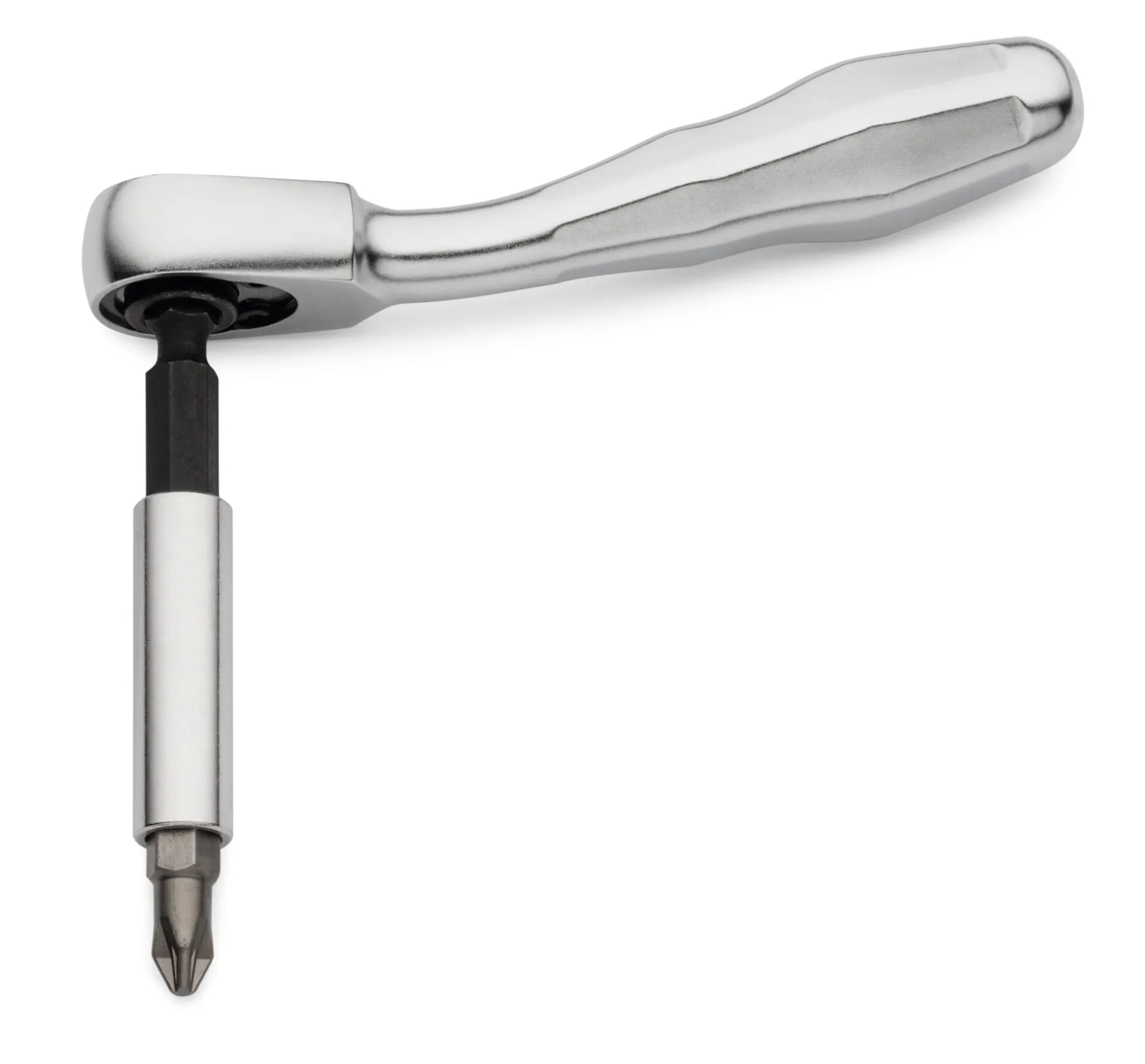 Werkzeuge aus Chrom-Vanadium-Stahl. 1 Miniratsche (1/4-Zoll) und 1 Verlängerung, 7 Steckschlüsseleinsätze (5; 5,5; 6; 7; 8; 10; 13); 1 Bithalter mit Adapter und Bithalterverlängerung, 7 Bits (3 Schlitz, 4 Kreuz). Gesamtgewicht 475 g. Lieferung in einer Buchenholzkiste (Tiefe 9 cm, Breite 16 cm, Höhe 3,5 cm).