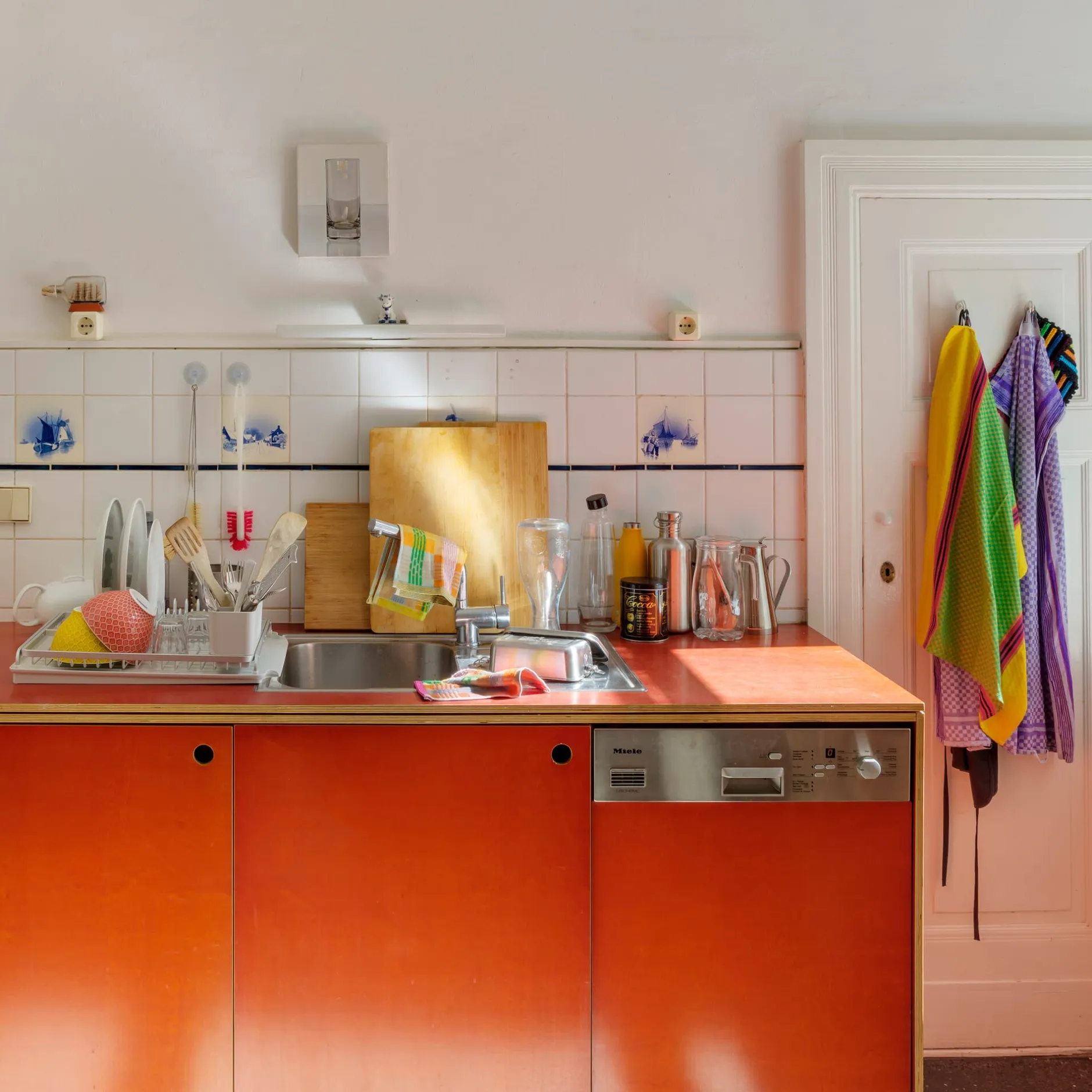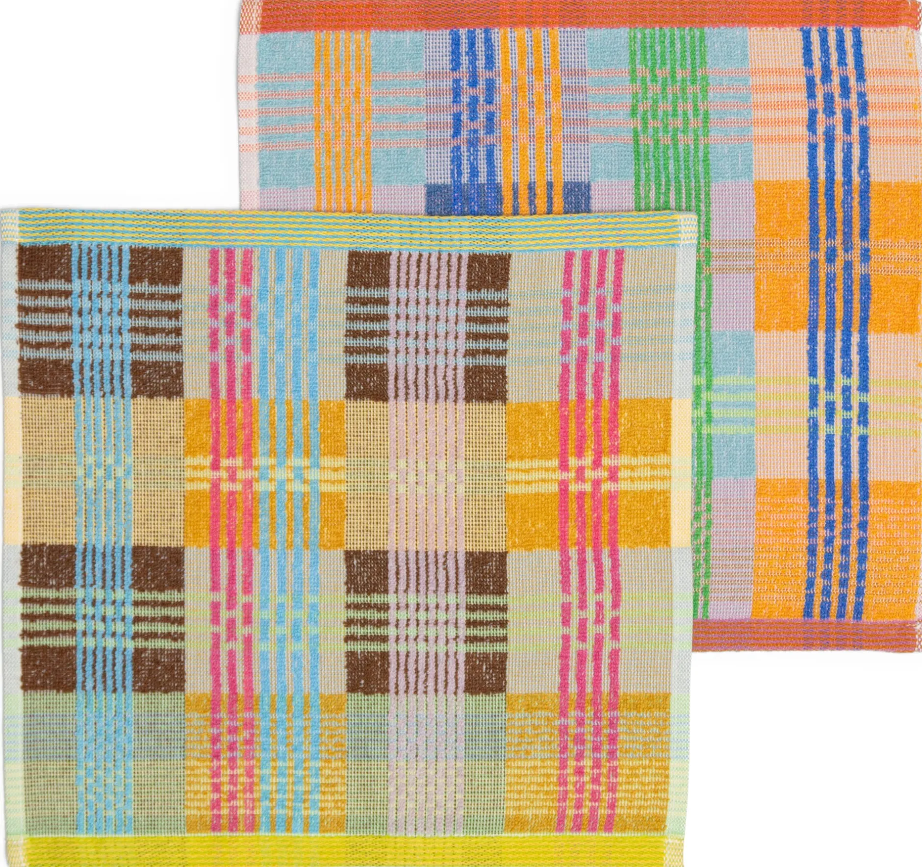 Farbstarkes Spültuch aus Garnresten aus der Textilindustrie. Das Textil aus reiner Baumwolle sorgt mit seiner Strukturkombination für einen angenehmen Griff und effektive Reinigung: In dem aus Profiküchen bekannten und farbig neu interpretierten Karomuster wechseln sich Frottiergewebe und flachgewebte Bereiche ab. Erstere sorgen für Saugkraft, letztere für die geschmeidige Handhabung. Zusammen bilden sie ein putzkräftiges Profil. Schöner Hingucker in der Küche.