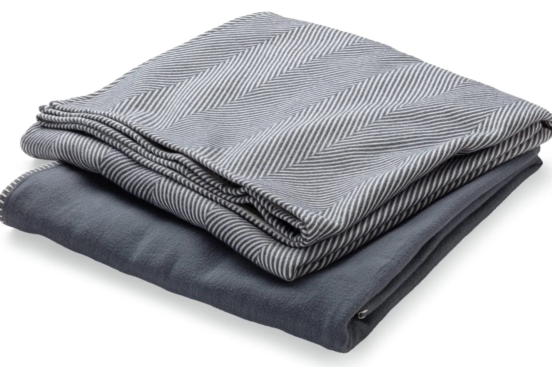 Wir bieten die Baumwolldecke in zwei Varianten an: zum einem mit klassischen Fischgratmuster und gesäumten Kanten. Zum anderen als Doubleface mit zwei unterschiedlich unifarbenen Seiten gewebt. Die Kanten sind hier rundum sauber mit weißem Baumwollgarn umkettelt. Hergestellt wird die Decke in der Traditionsweberei Framsohn im niederösterreichischen Waldviertel.