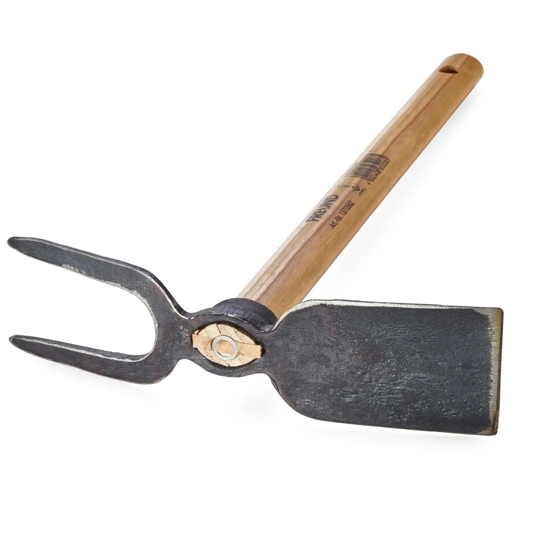 Auf der einen Kopfseite als Blatt-, auf der anderen als Zweizinkenhacke ausgeführt, ist dieses klassische Gartenwerkzeug vielseitig einsetzbar: zum Pflanzen, Jäten und Auflockern des Bodens. Der verlängerte Stiel verleiht der Doppelhacke eine größere Reichweite, sodass sie auch für die Arbeit in größeren Hochbeeten sehr gut geeignet ist. Länge des Stiels und Gewicht des Kopfes sind zudem so gut aufeinander abgestimmt, dass die Hacke auch ohne größeren Kraftaufwand satt in die Erde fällt und doch gezielt gehandhabt werden kann.