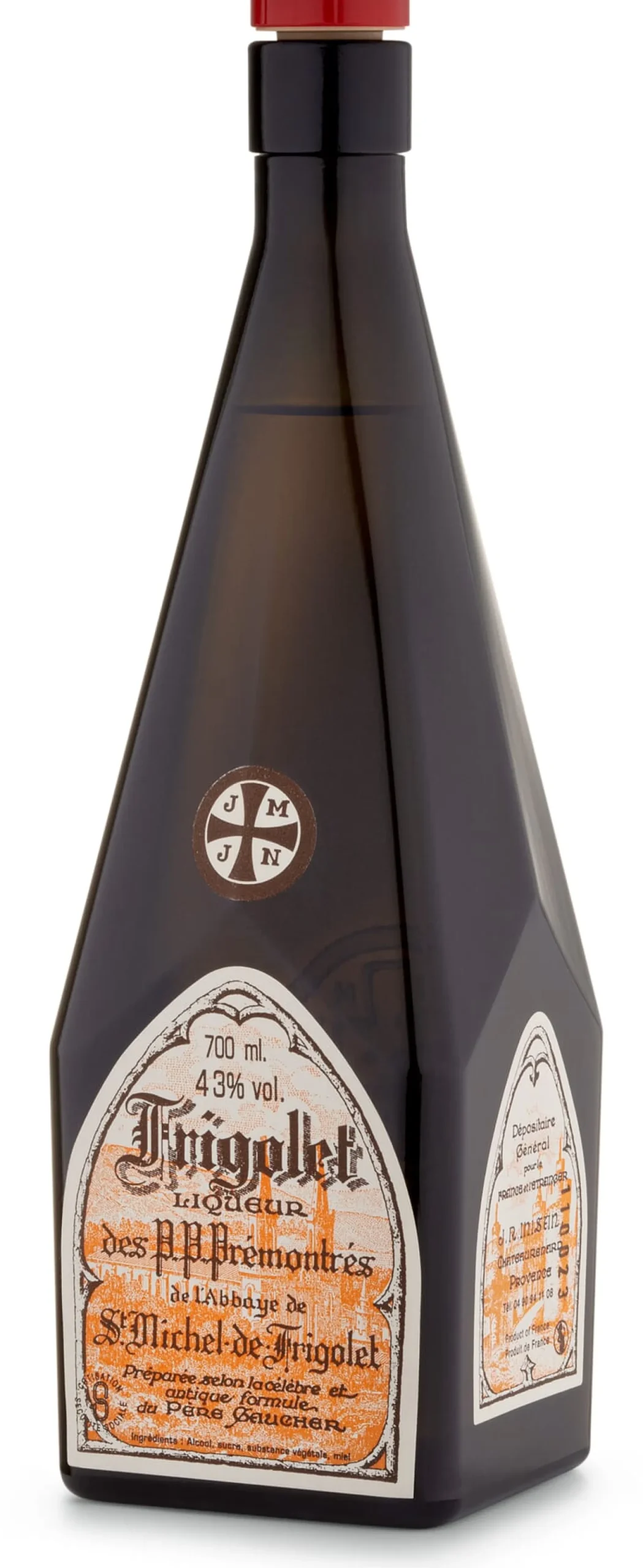 30 Pflanzen, zum größten Teil in der Provence gewachsen, darunter Thymian und Rosmarin, finden Eingang in die Erzeugung dieses Likörs. Nach der Ernte, der Trocknung, Sortierung, Portionierung wird diese Mischung in neutralem Alkohol mazerisiert. Danach erfolgt die Destillation und anschließend eine Lagerung in Eichenholzfässern. Zum Schluss werden noch Zucker und Honig zugesetzt. Der Likör, ursprünglich „Norbertine“, wurde erfunden von den „Norbertinern“ (genannt nach dem heiligen Norbert = Prämonstratenser) des Klosters Saint Michel de Frigolet, wohl Anfang des 19. Jahrhunderts. Das Kloster, in der Hügellandschaft der Montagnettes unweit Avignons gelegen, hat seinen Namen von dem provenzalischen Wort „ferigoulo“, zu deutsch Thymian. Mit der Zeit wurde der Likör ein derartiger Erfolg, dass die Mönche mit der Produktion nicht mehr nachkamen und ihr Rezept an eine Destillerie in Châteaurenard, im Herzen der Provence gelegen, verkauften. Heute betreibt die Familie Inisan die Destillerie in dritter Generation.